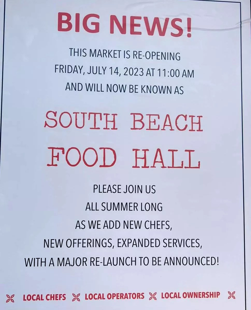 On Thursday, July 6, less than a week after tenants vacated the premises, a sign was posted just inside the entrance to the building at 1601 Drexel Ave., alerting passersby that the market will reopen on Friday, July 14, at 11 a.m. under a new name: South Beach Food Hall.