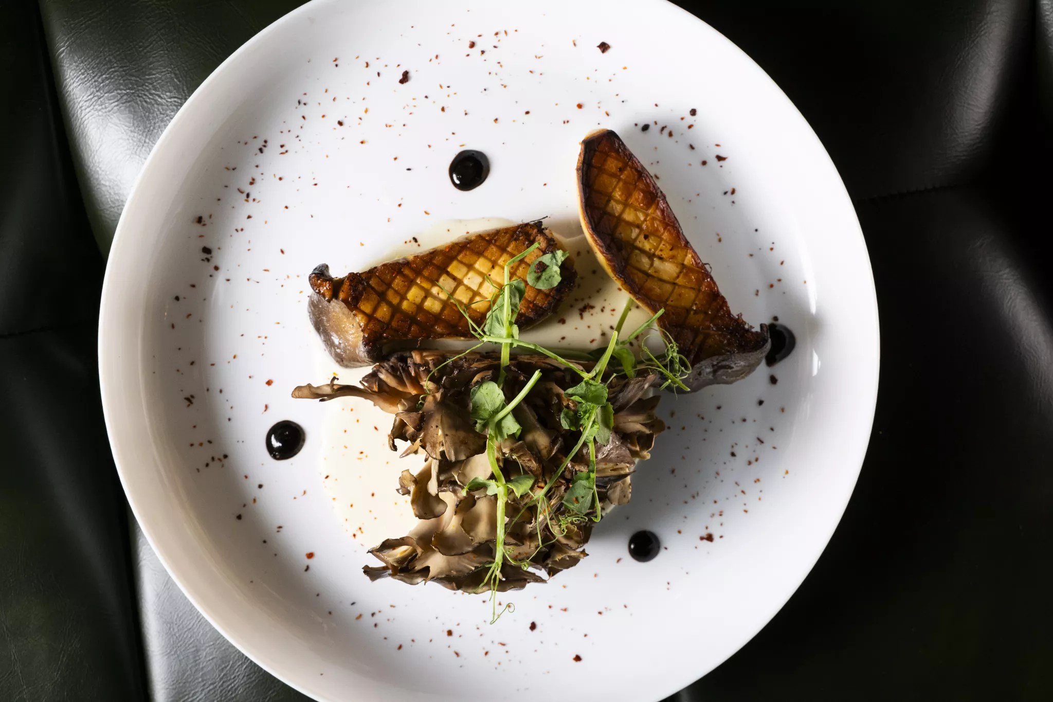 “Gratitude Mushrooms” with black garlic cream at Jay’s in Fort Lauderdale