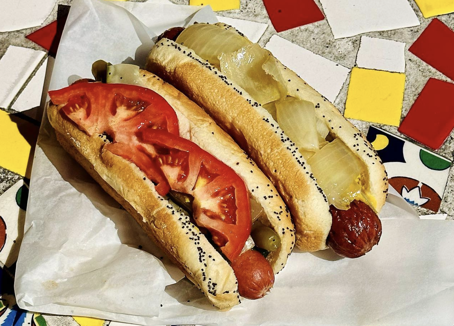 Two Chicago-style hot dogs from the legendary Hot Dog Heaven in Fort Lauderdale