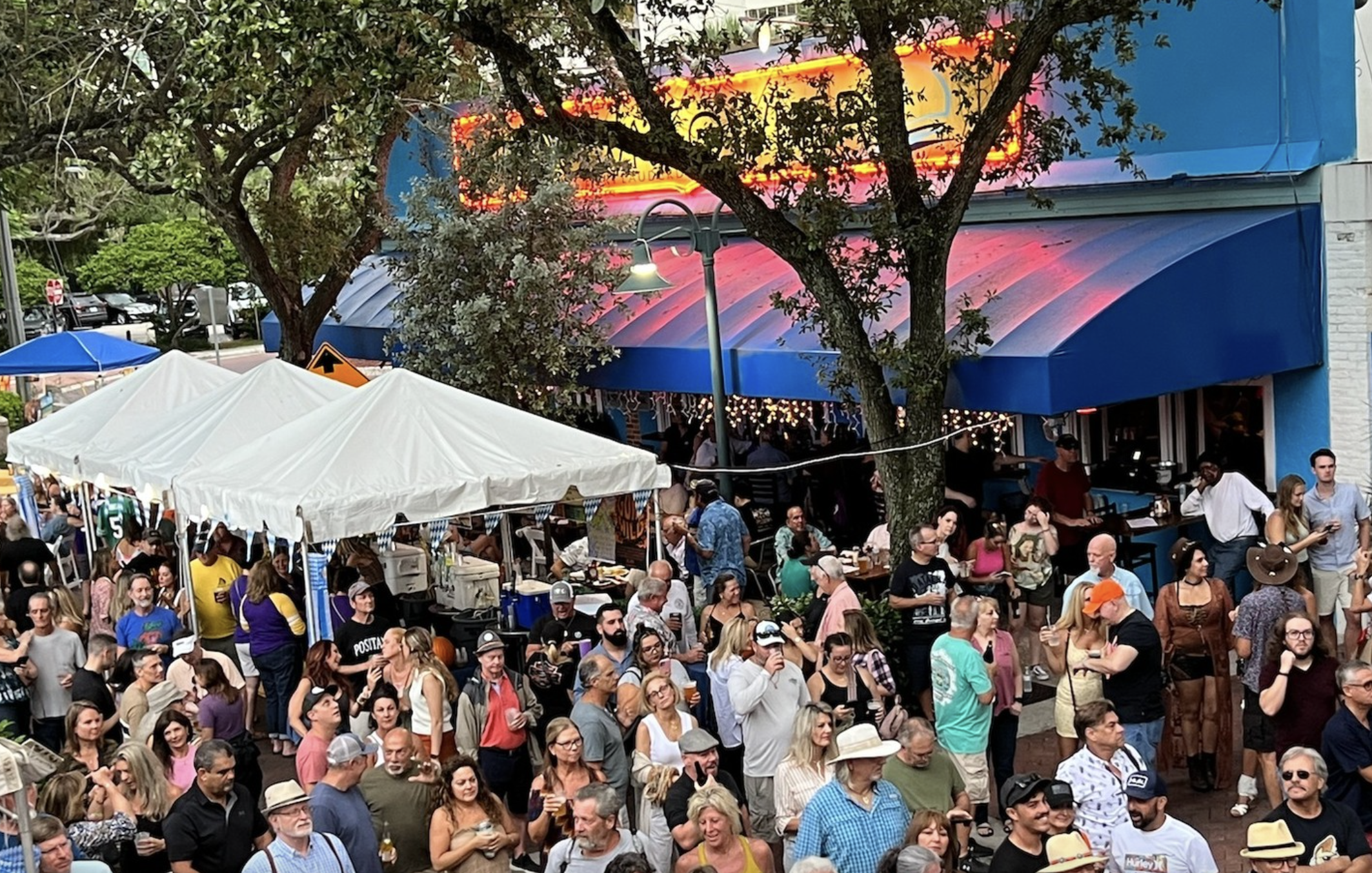 A festival takes place outside of the Historic Downtowner on New River Drive in downtown Fort Lauderdale.