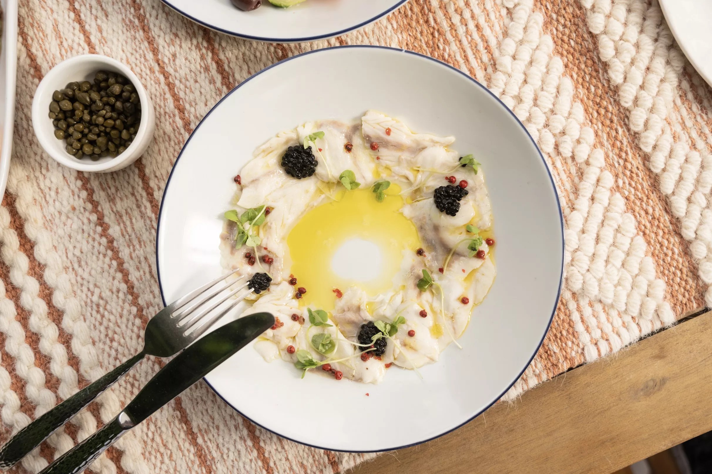 “We source our branzino and spices from Spain, while our feta cheese comes from my hometown of Sparta, Greece,” Tsaglis explains. “The olive oil, oregano, and kalamata olives also hail from the regions of Sparta, infusing each dish with Mediterranean flavors.”