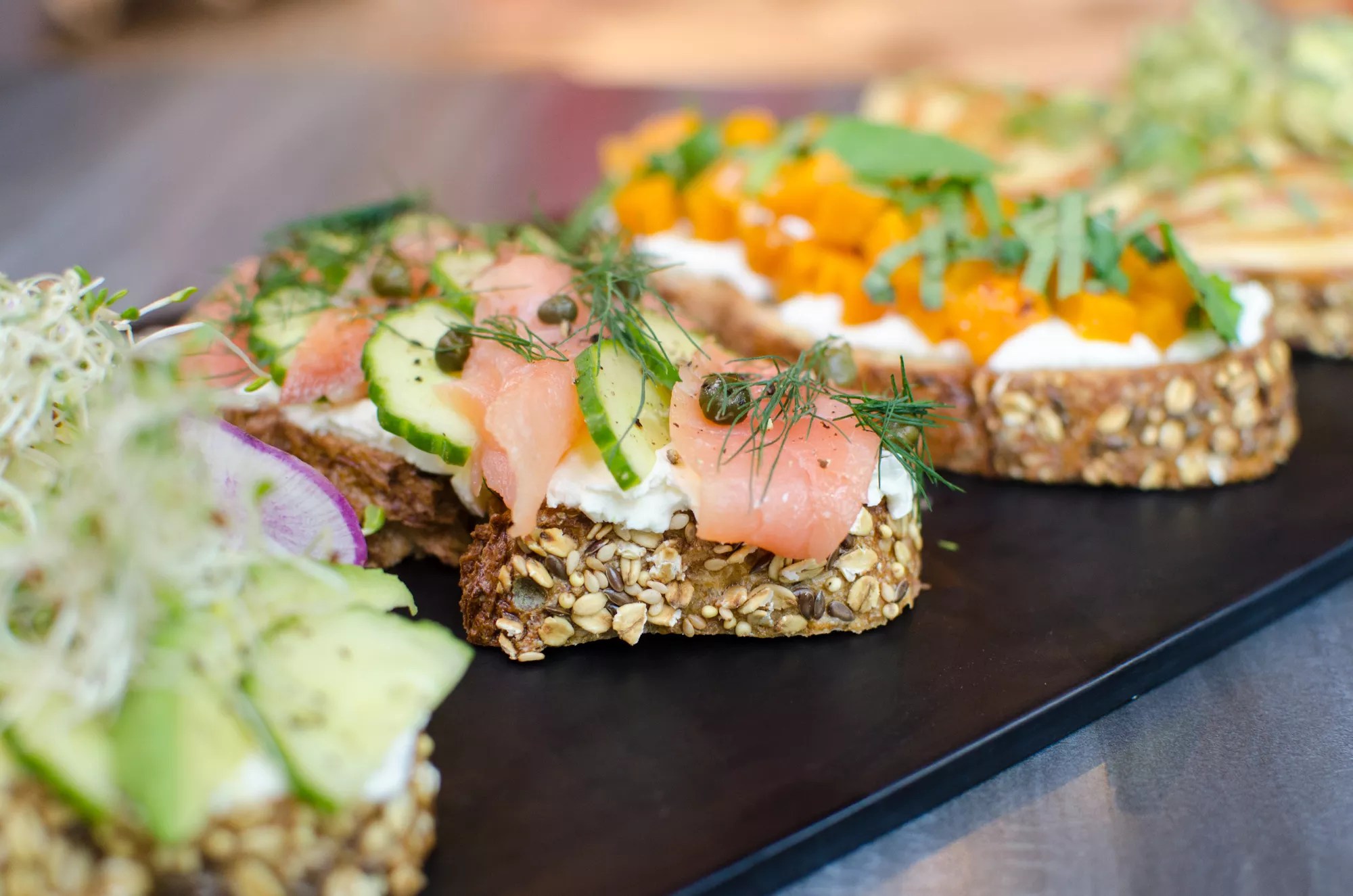 The 22-seat space, decorated with big-ticket art pieces, is a place for breakfast, lunch, and a coffee and pastry in the afternoon. Many of the café’s dishes use brightly colored ingredients like avocado, strawberries, and greens and are designed on black, canvas-like plates to be works of edible art. Courtesy of LaMuse Cafe