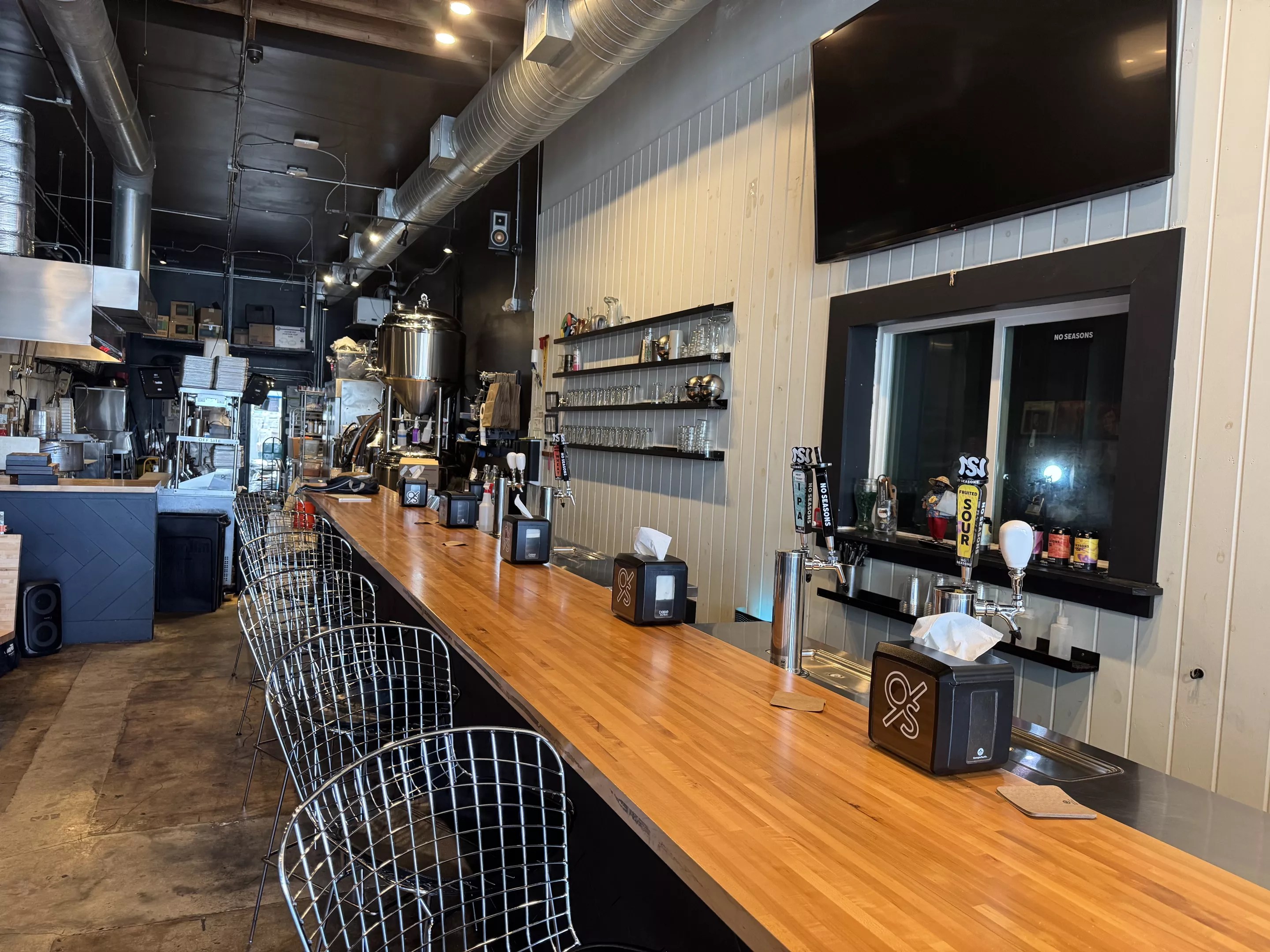 The current interior space of Off Site before its grand opening as Off Site Kitchen x No Seasons Beer in late October