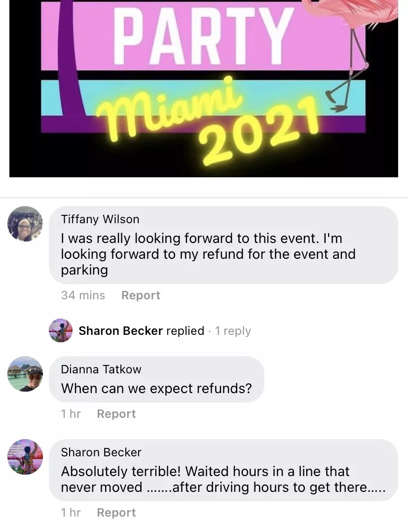 “We never would have wanted this disaster to happen, and it’s entirely the City of Miami’s fault,” she said at 2:30 p.m. “They’re sending an electrician out, who should be here in 30 minutes.” She discreetly told some of those who were still waiting in line that they could gain entry to the event. “If you just stroll down the beach, you’re going to find a path into the event – but people can’t flood it,” she said.