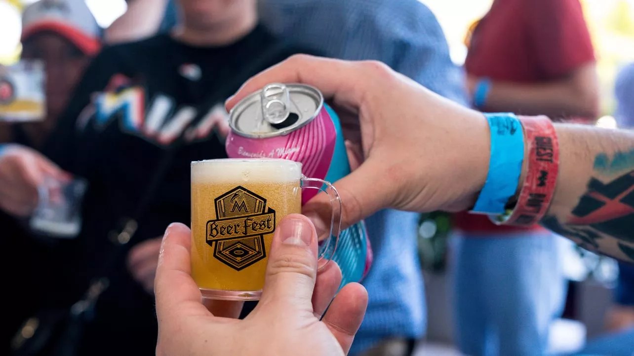 Sampling of beer at Beerfest at the Clevelander in Marlins Park.