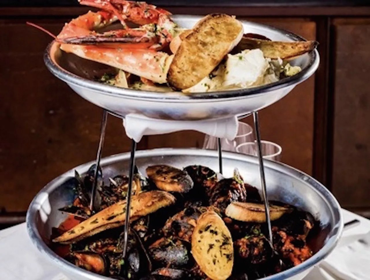 This season, the upscale steakhouse in Miami Beach’s South of Fifth neighborhood is serving a bevy of tantalizing dishes, including an indulgent three-tiered hot seafood tower piled with whole Maine lobster, king crab, white gulf shrimp sautéed in lemon garlic butter, mussels diavolo, oysters Rockefeller, and stuffed clams ($199). Continue your meal with wild mushroom pasta, packed with royal trumpet, white and brown beech, and maitake mushrooms in a mushroom cream sauce with Pecorino-Romano cheese ($41); zucchini flowers stuffed with ricotta and king crab served over sweet corn and roasted chile risotto ($24); a 40-day aged Porterhouse ($199); and an ultimate meat board ($299). Dessert highlights are the red velvet cake ($19) and a creme brûlée duo ($15 each or $24 for both). Red the Steakhouse also hosts Wine