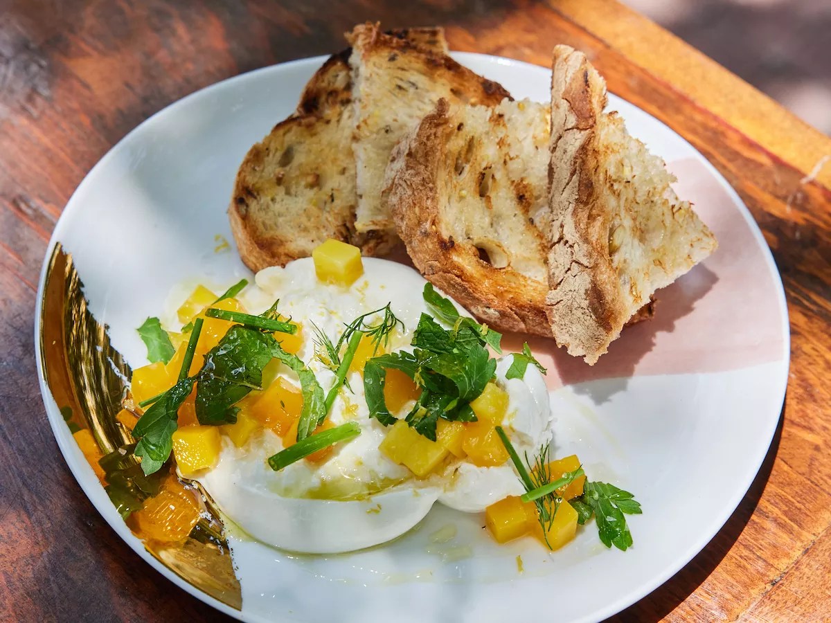Mangos are paired with burrata at Rosie’s: The Backyard.