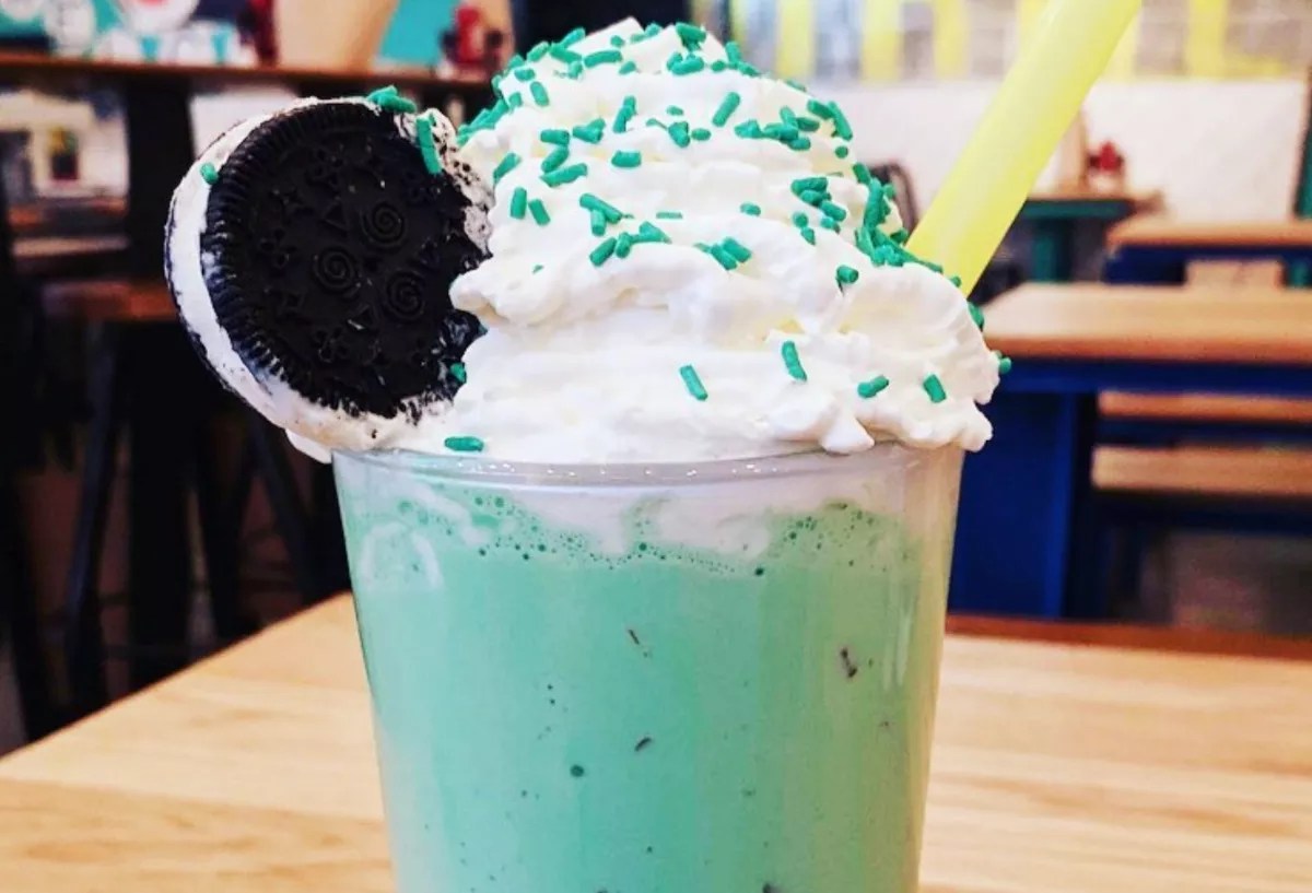 Enjoy a “Luck O’ the Irish” milkshake, made with vanilla ice cream, milk, green mint syrup, chocolate mint crumbles, and a mini ice cream sandwich ($9.99). For $5 more, spike your shake with a shot of Irish whiskey or Irish cream.