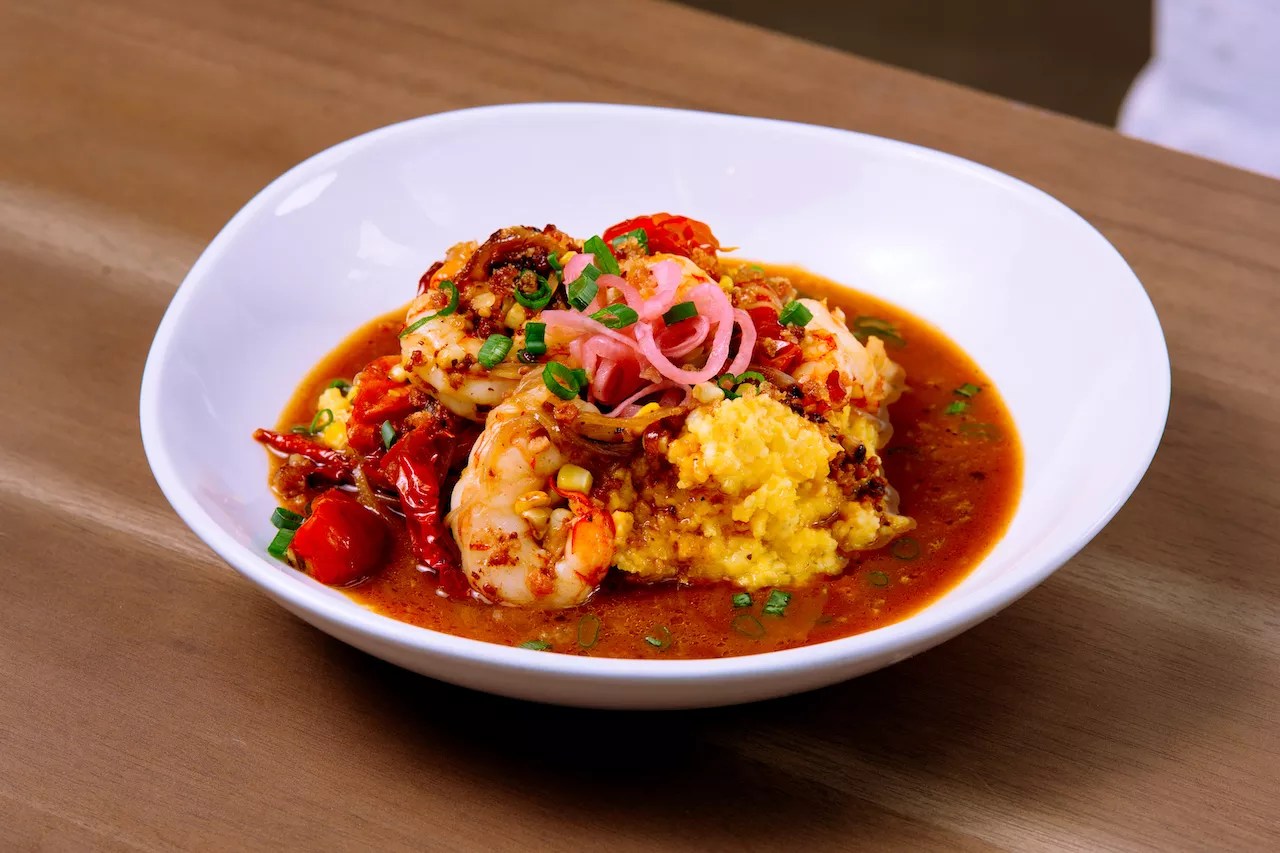 various locations Root & Bone’s shrimp and grits. Photo by Grove Bay Hospitality Group