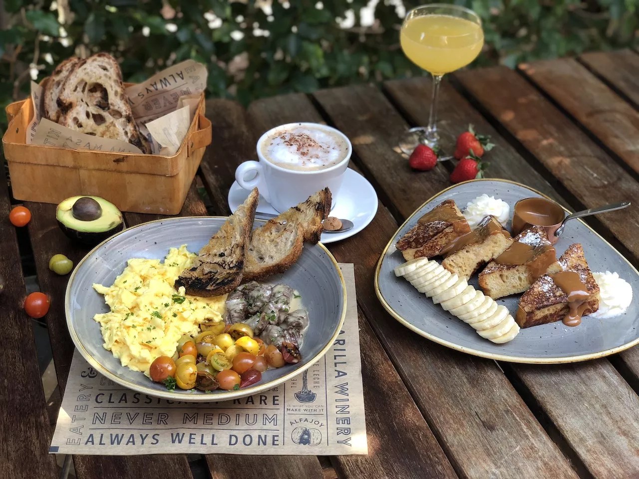 If you can’t wait till the weekend, head to pastry chef Antonio Bachour’s bakery and bistro in Coral Gables any day to savor a French-inspired Á la carte brunch. Breads and other baked goods are made in-house daily, and the menu is a blend of breakfast dishes such as Spanish scramble ($17), guava and cheese pancakes ($16), and avocado tartan ($15) and lunch items such as tuna Niçoise salad ($24), roasted chicken breast ($17), churrasco ($18), and salmon with succotash ($18). The offerings are complemented by an assortment of Bachour’s gorgeous pastries, including pear mousse with pear compote and almond cake ($8), coconut cheesecake ($8), mojito and matcha macaroons ($3), and croissants such as peanut butter and jelly ($6.50), red velvet ($5), and dulce de leche ($4.50). Brunch is served daily from 8 a.m. to 7 p.m.