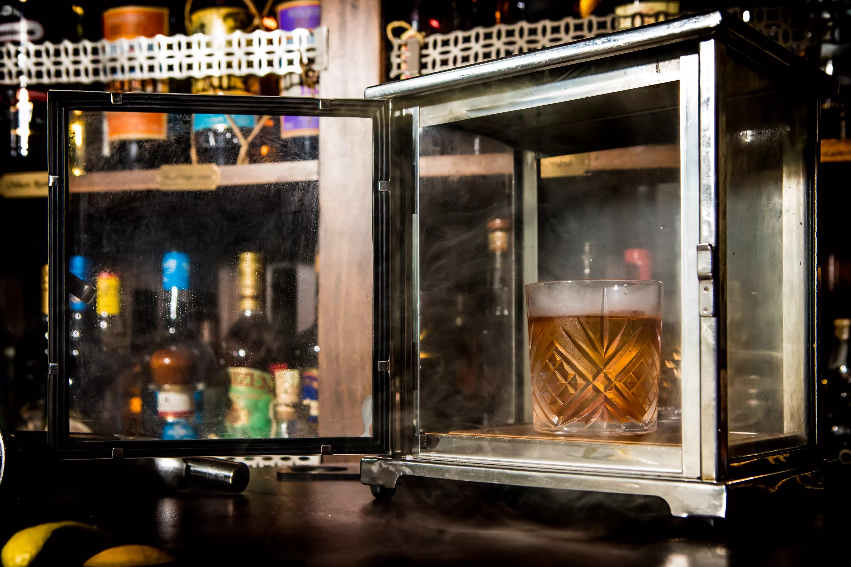 Nestled inside the Stiles Hotel, Swizzle Rum Bar & Drinkery offers more than 150 rums for the tasting. Sit at the intimate 24-seat bar and try an Old Marley ($14). The hazy concoction fuses Redemption rye whiskey, Appleton Estate Reserve rum, Swedish Punsch liqueur, Rum Rire Jamaican overproof rum, and bitters infused with applewood smoke. One sip will transport you to a cabin in the woods.
