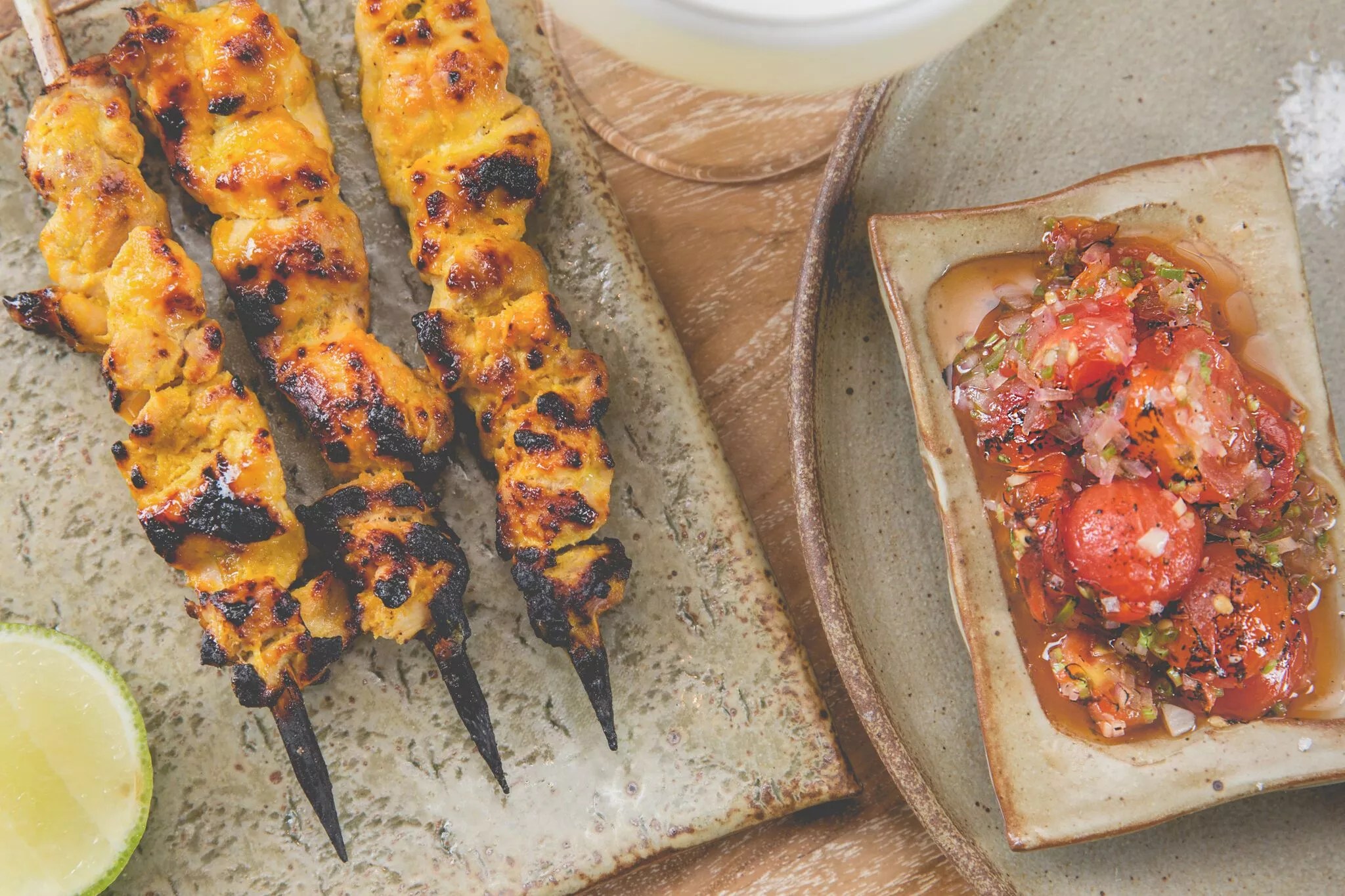 Chicken skewers are discounted during Doa’s daily happy hour.