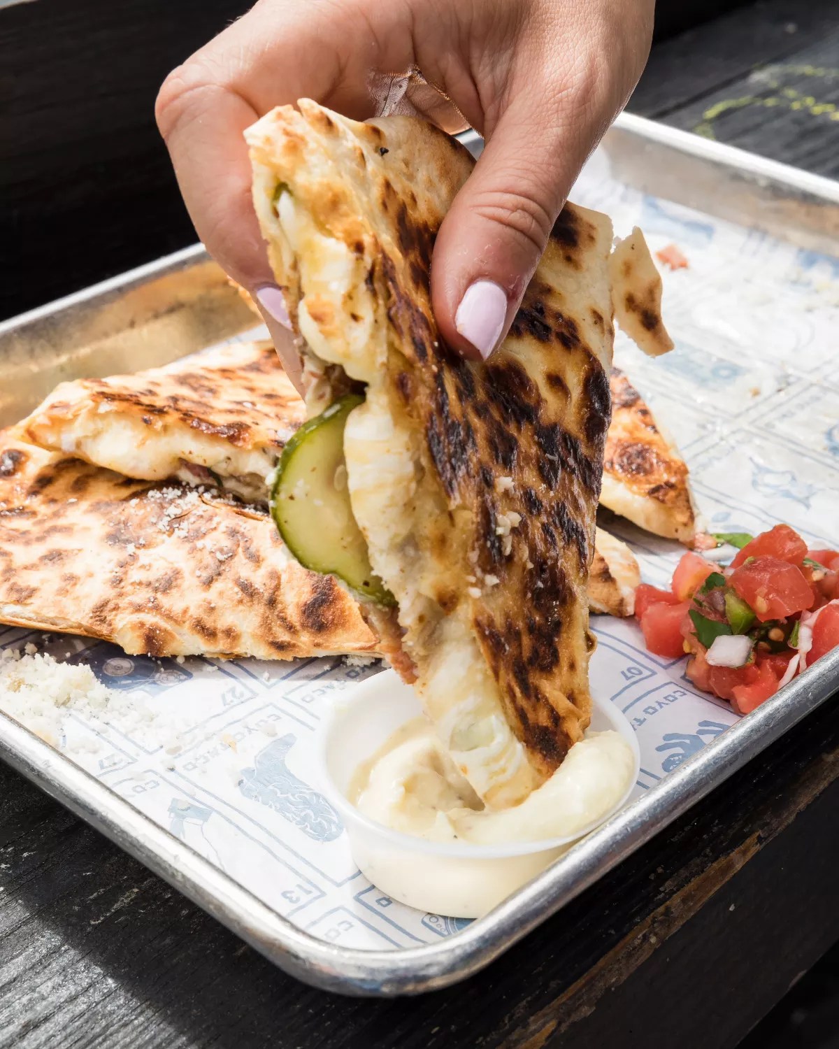 This weekend, celebrate 305 Day at Miami-area restaurants and bars, including Coyo Taco, Kush Hialeah, Black Market, and 1-800-Lucky. Plus, Salt & Straw’s Flavors of Miami pops up and Wynwood Marketplace reopens. The “305 Quesadilla” features the best of Coyo Taco and Sanguich de Miami in one bite. Photo courtesy of Coyo Taco