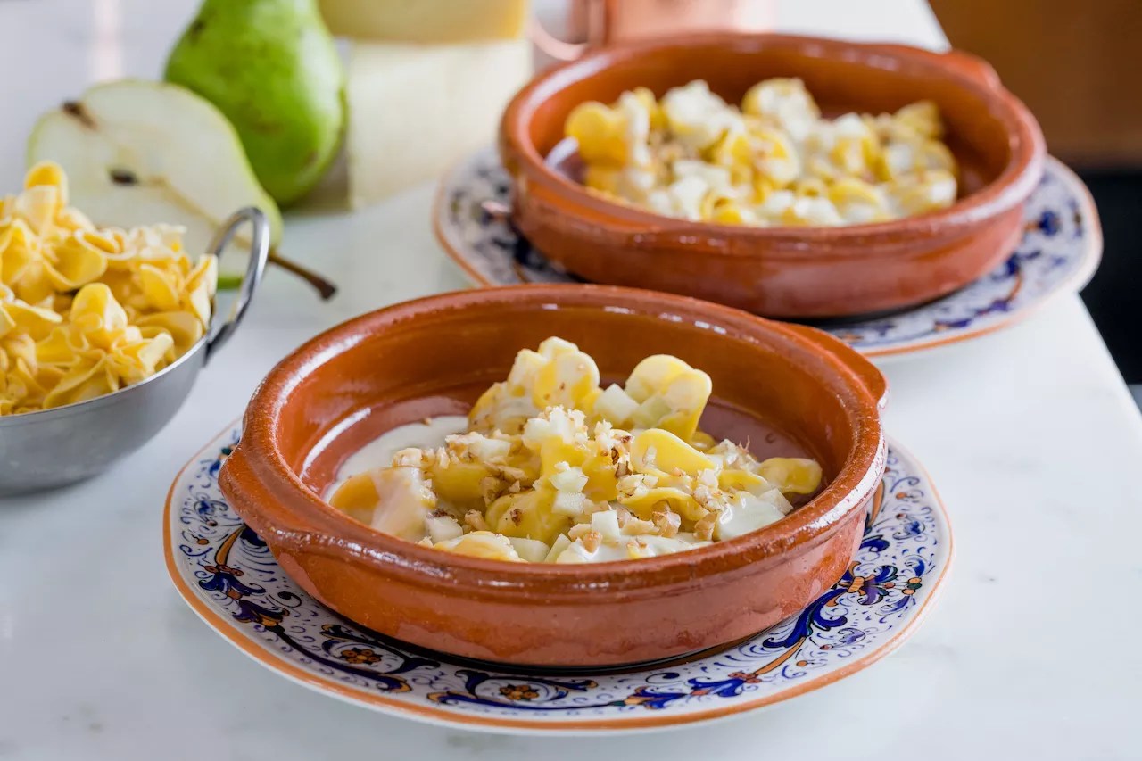 The Spanish gastrobar has introduced seasonal dishes to help you compose a refreshing summer meal. Start with an appetizer of gazpacho Andaluz ($6.50), toasted slices of pan con tomate ($7), or tuna tartare served with soy-sesame vinaigrette and sriracha aioli ($15). From the “Summer in Spain” list of entrées, try the braised lamb shoulder prepared Mallorcan style, accompanied by piquillo confit, garlic chips, and patatas panaderas ($14); a dish of fiocchi de pera – pear-filled pasta topped with a combination of honey Valdeón blue cheese sauce, diced pears, and chopped walnuts ($13) – or salpicón de mariscos: octopus, shrimp, mussels, marinated olives, and lemon olive oil ($14). For dessert, order Andalusian-style flan with yogurt foam, blueberries, and raspberries ($8). Pair with summer drink options like the Mezcalita, a spin on a classic margarita made with Pelotón de la Muerte mezcal, orange juice, triple sec, and agave ($13) or lemonade with peach oolong syrup and lavender syrup. Served daily.