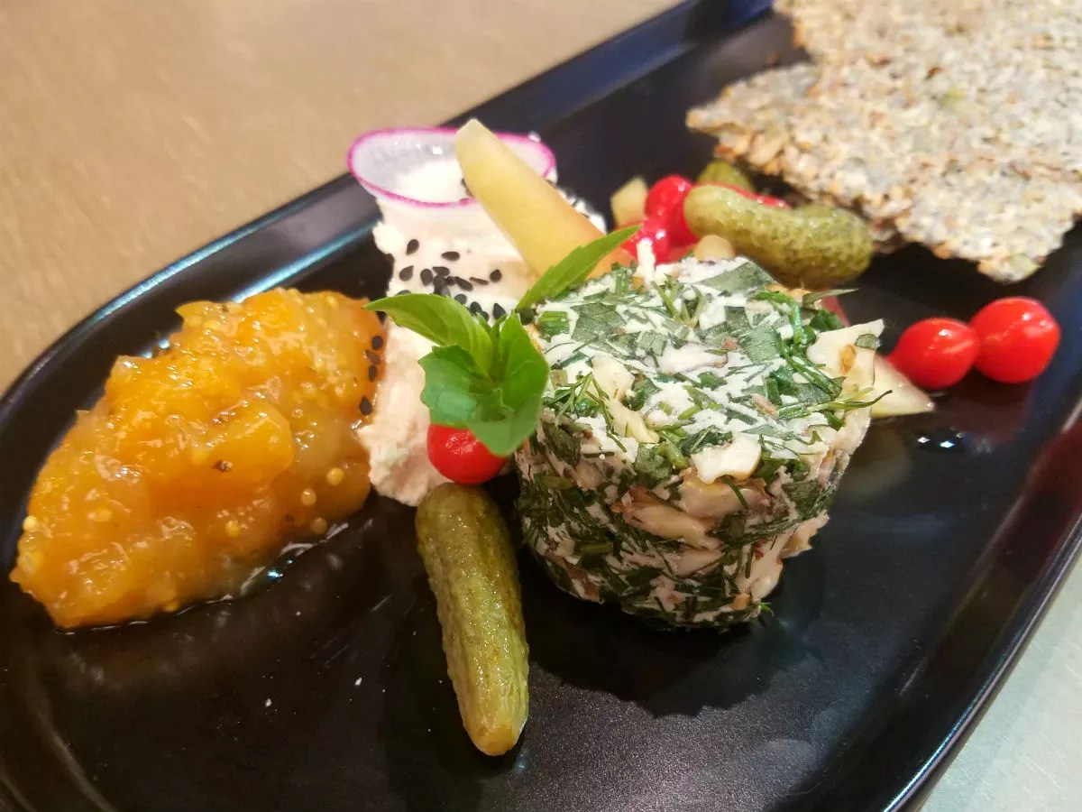 On the snack side, the jackfruit “al pastor” taco ($7) is a piquant mix of barbecued jackfruit, pineapple, red cabbage, tomatillo salsa, and a silken tofu cream. The jackfruit is a serious endeavor: The staff tosses it in onions, garlic, and other spices; roasts it; and then adds it to a big pot with more spices, beer, jalapeño, and caramelized pineapple before cooking it down. The final product is satisfying, savory, and incredibly meaty. Cashew cheese platter Photo by Hannah Sentenac