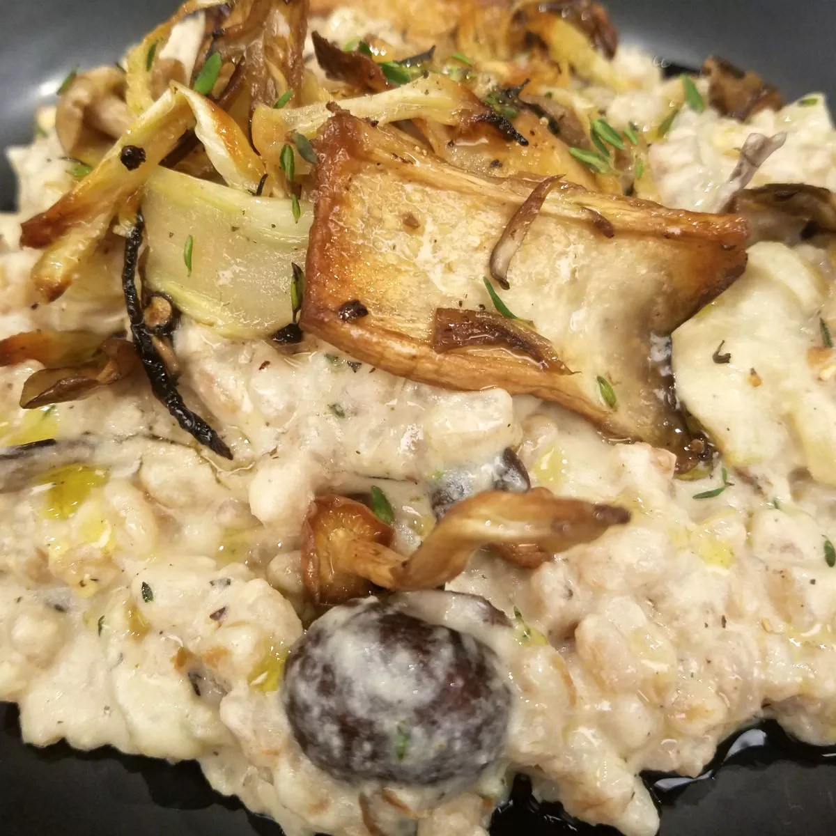 For entrées, the farro risotto ($13) is made with a roasted wild mushroom ragout, charred fennel, and white wine. A plate of spaghetti and meatless balls ($11) arrives with a hearty portion of spaghetti, chunky marinara, and uniquely nutty grain-bean “meat” balls. Chana masala Photo by Hannah Sentenac