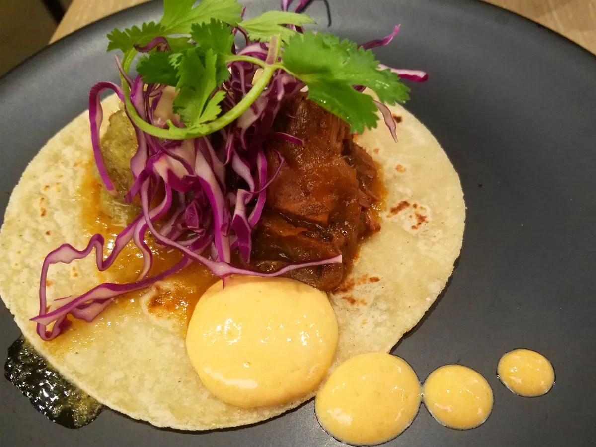 The menu, executed by chef de cuisine Nuno Grullon, offers an array of options with an international flair. There are snacks, soups, flatbreads, bowls, desserts, and vegan beer and wine.