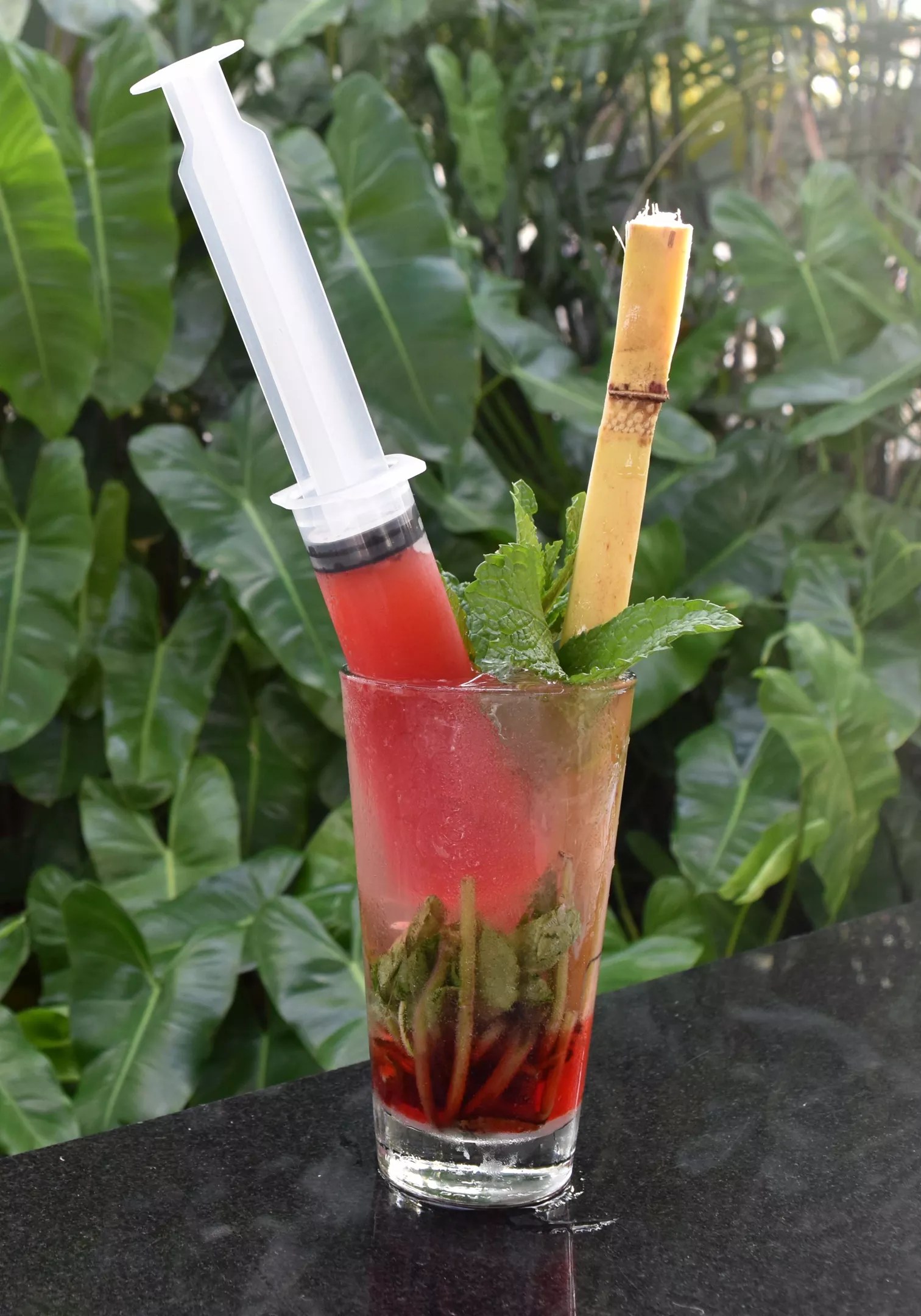 1. Bloody Mojito at Havana 1957.  This blood-red mojito will no doubt get you in the Halloween mood. The Bloody Mojito ($13.95) consists of vibrant red rum muddled with fresh mint, sugar, and lime, topped with a syringe of fruity goodness. If rum is not your thing, opt for the Vampisol ($8.50), made with chilled beer, fresh lime juice, and Clamato juice. 405 Española Way, Miami Beach, 305-503-3828; havana1957.com.