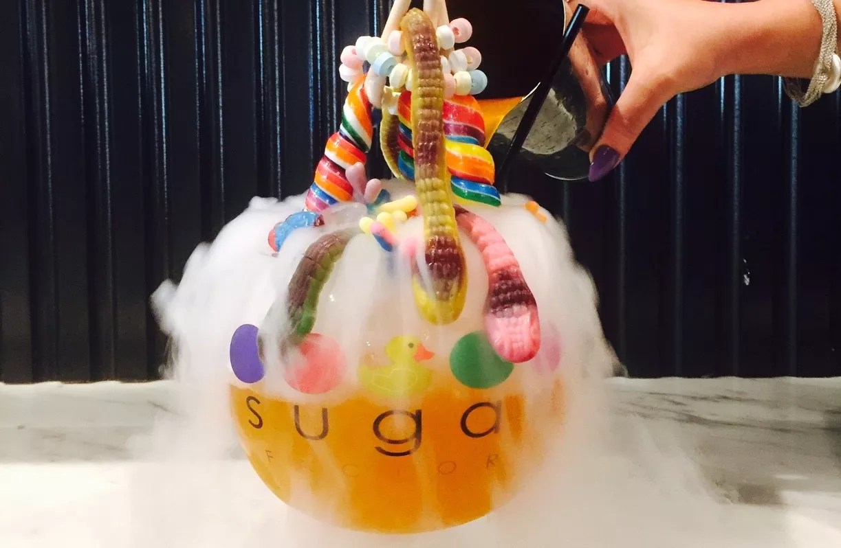 3. Lollipop Brew at Sugar Factory. Nothing says Halloween like a smoking witch’s brew brimming with candy. Indulge your inner child with this outrageous goblet filled with citrus vodka, coconut, melon syrup, pineapple juice, sour mix, gummy snakes, and gummy brains ($29; serves two). 1144 Ocean Dr., Miami Beach; 305-604-0323; sugarfactory.com.
