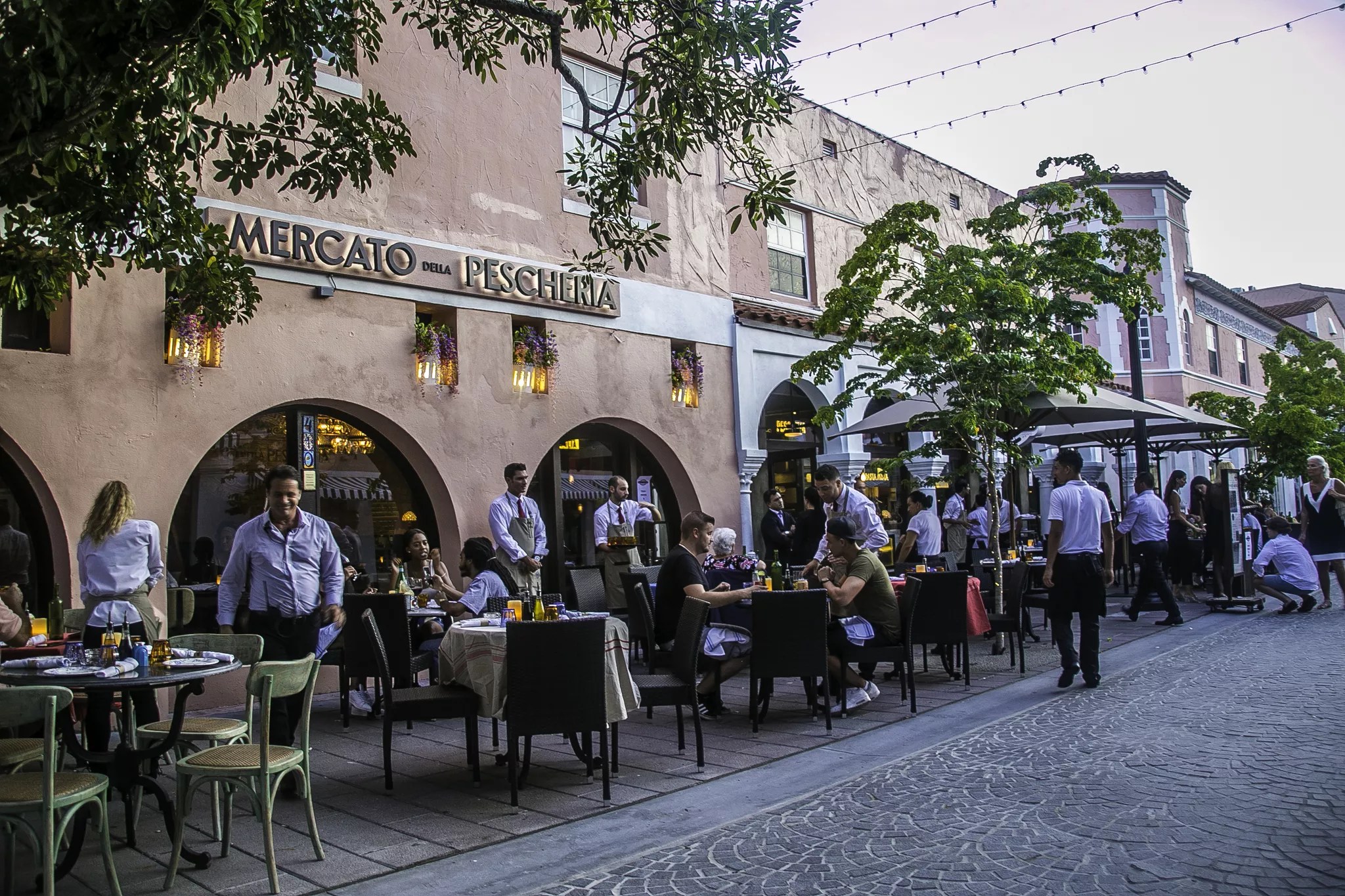 A table for one at Mercato Della Pescheria is a ticket to a great dose of entertainment, starting with window displays where you can watch chefs prepare the food. Inside the restaurant, pasta hangs from wooden rods, fresh fish is layered in buckets of ice, and cheese wheels are stacked on shelves just below the ceiling. The market-style eatery offers Italian classics such as Mama’s lasagna ($25), cacio e pepe prepared tableside ($28), and bucatini carbonara ($24) to enjoy while watching people pass by on Española Way, but you will be equally pleased with meat dishes of osso buco with roasted vegetables and risotto ($38), Mediterranean sea bass ($39), and tuna alla Genovese served with caponata ($34).