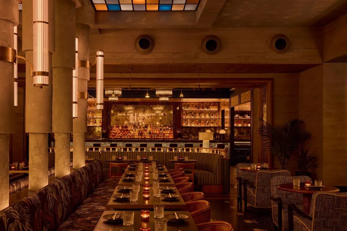 In Brickell, Claudie made the list with a design from OV & Co. and Lazaro Rosa Violan Studio that blends greenery and natural accents with murals and bold lighting, creating a restaurant that feels part dinner spot, part club. Designed by Rohe Creative Double Knot Miami photo