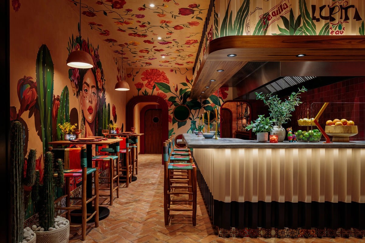Saladino Design Studios notched two more nominations. Lupita in downtown Miami proves fast casual tacos can still look striking, with murals, graffiti, and ceiling art packed into a small space.