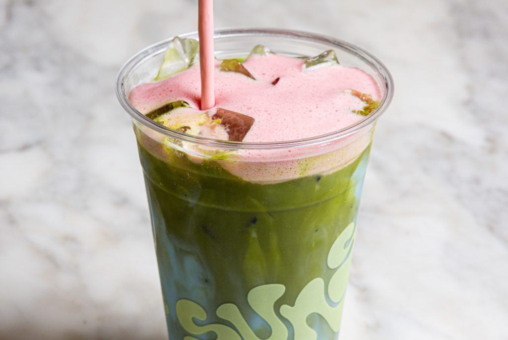 The cafe uses ceremonial-grade matcha to create refreshing drinks, including “Baby Blue Vanilla Matcha Latte,” pictured here