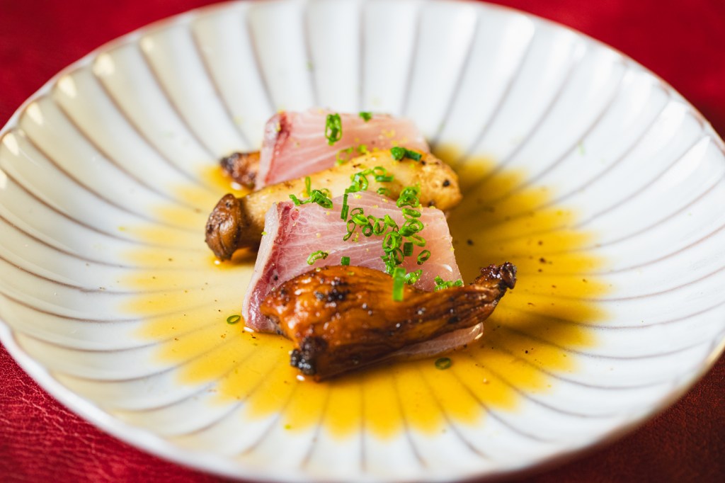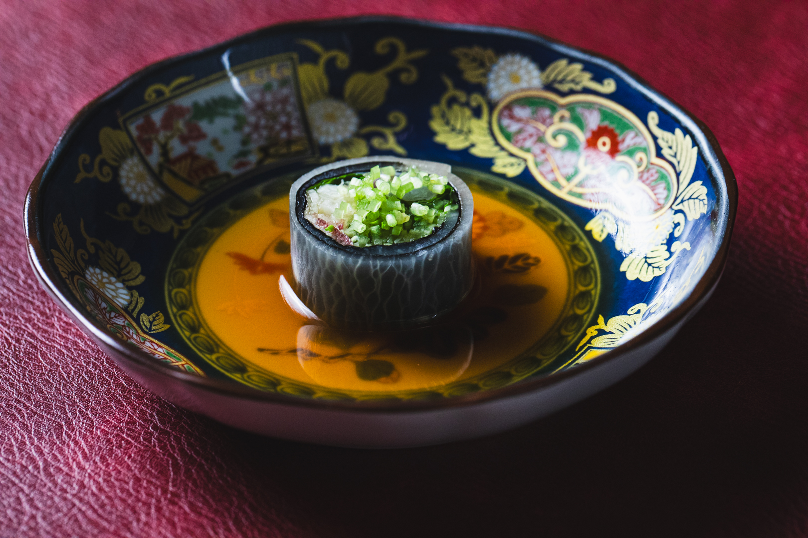 The tasting lasts more than two hours and unfolds in stages, progressing from small Japanese-inspired courses to raw omakase and finally to dessert. A piece of kinuta maki serves as a palate reset before the raw sequence begins. Chen draws from his time in Italy and Japan, serving dishes like udon, influenced by Roman pasta, and carefully prepared yellowtail sashimi, as well as occasional wagyu katsu or a milk bread sandwich. Picky eaters be warned, like most omakases, Omawei cannot accommodate diners who are vegetarian, vegan, or those who avoid seafood, raw fish, or soy.
