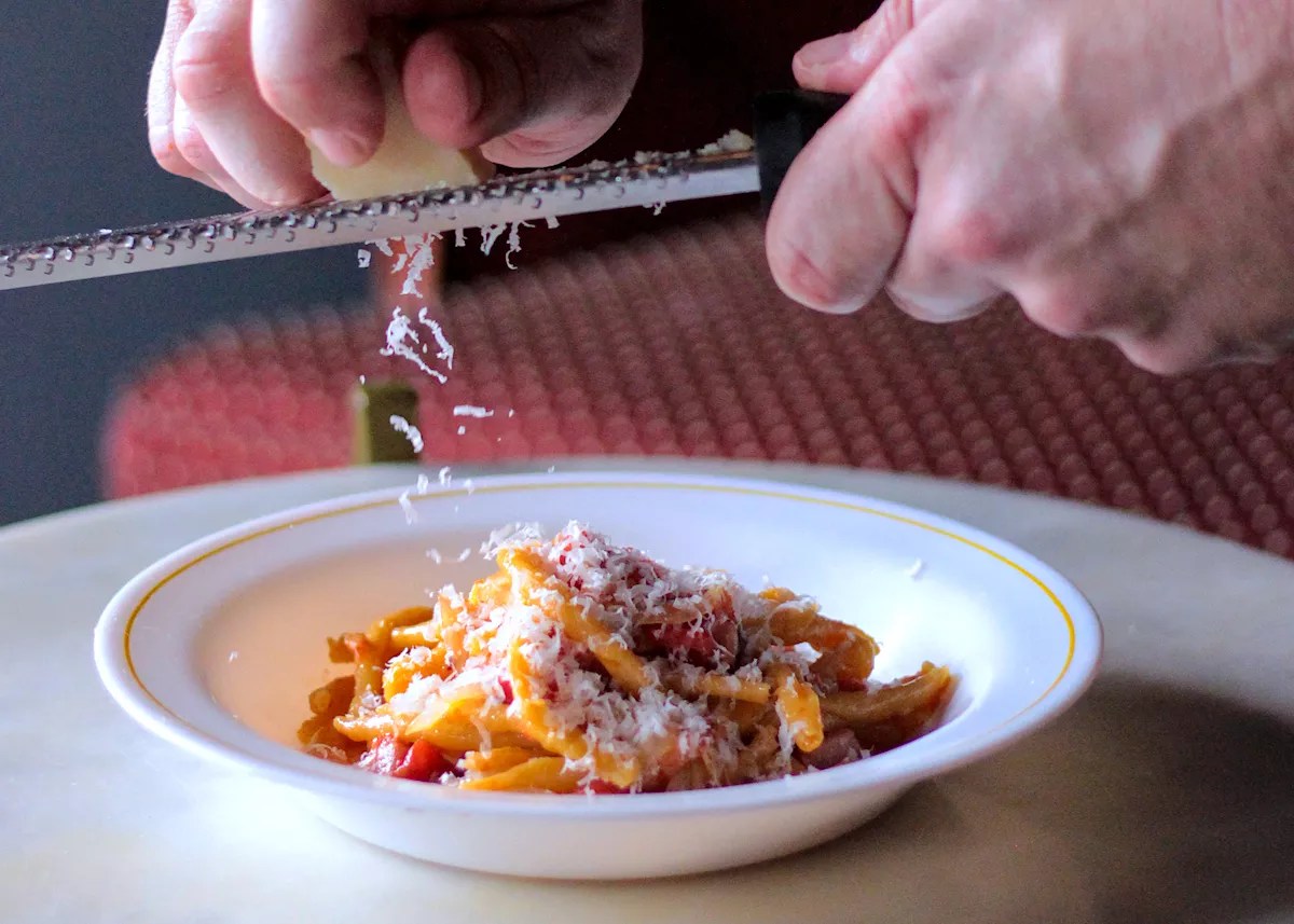 Larger plates feature a cast iron-fried chicken schnitzel served with a fried egg; a double patty smash burger; and handmade pasta like the venison Bolognese agnolotti or country ham and bacon-studded strozzapreti.