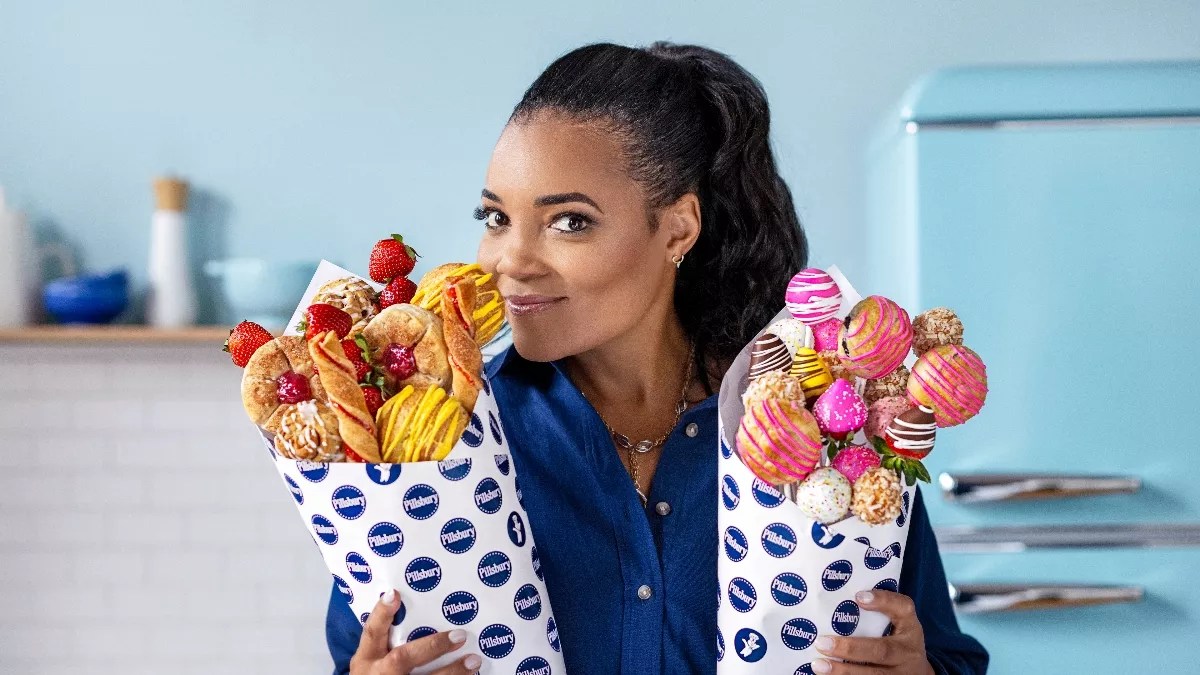Chef Jones has collaborated with Pillsbury to create an edible brunch bouquet, a beautiful arrangement of flowers that just happen to be made with delicious cinnamon rolls, biscuits, and crescent rolls.