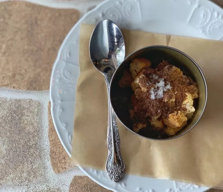 It seems almost too simple, but the wonderful interplay of the salt with the crumb’s crunch, the chocolate’s bitterness, and the milk’s sweetness is entrancing. It’s almost unjust that locals and passersby can enjoy these totems of poverty and starvation without ever having to experience poverty and starvation. Yet what makes these dishes so beautifully shocking is Mas’ ability to present them with enough embellishment and enough restraint to create an accurate representation of the original while just hinting at the struggle that went into them. Though knowing of that strife can make enjoying these dishes a challenge, the only tragedy would be forgetting those struggles and injustices in the first place.