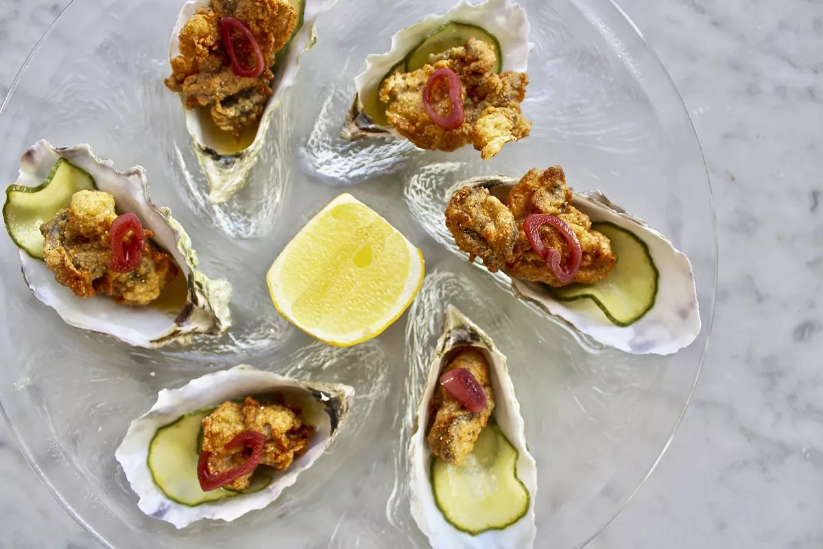 Ella’s Oyster Bar. 1615 SW Eighth St., Miami; 786-332-4436; ellasoysterbar.com. At first glance, Ella’s Oyster Bar may be designed in a Cape Cod-hipster motif, but the decor only hints at influences that also include the Caribbean and Latin America. For just-shucked oysters, the selection is more modest than those at some other places, but Ella’s boasts a delightful mignonette with red wine vinegar, which gives the tincture a sweeter, gentler bite that lends itself well to saltier oysters. The Little Havana clambake, large enough for two, is stocked with supple lobster, clams, head-on pink shrimp, and mussels. The brew begins with a light tomato water combined with sake, lemon juice, chives, and butter. Somehow it all emulsifies with the sweet oceanic liquor from the shellfish and the juice from chorizo to yield an assertively rich sauce that’s also light as a breath of beach air. Employees Only Miami Courtesy of Employees Only