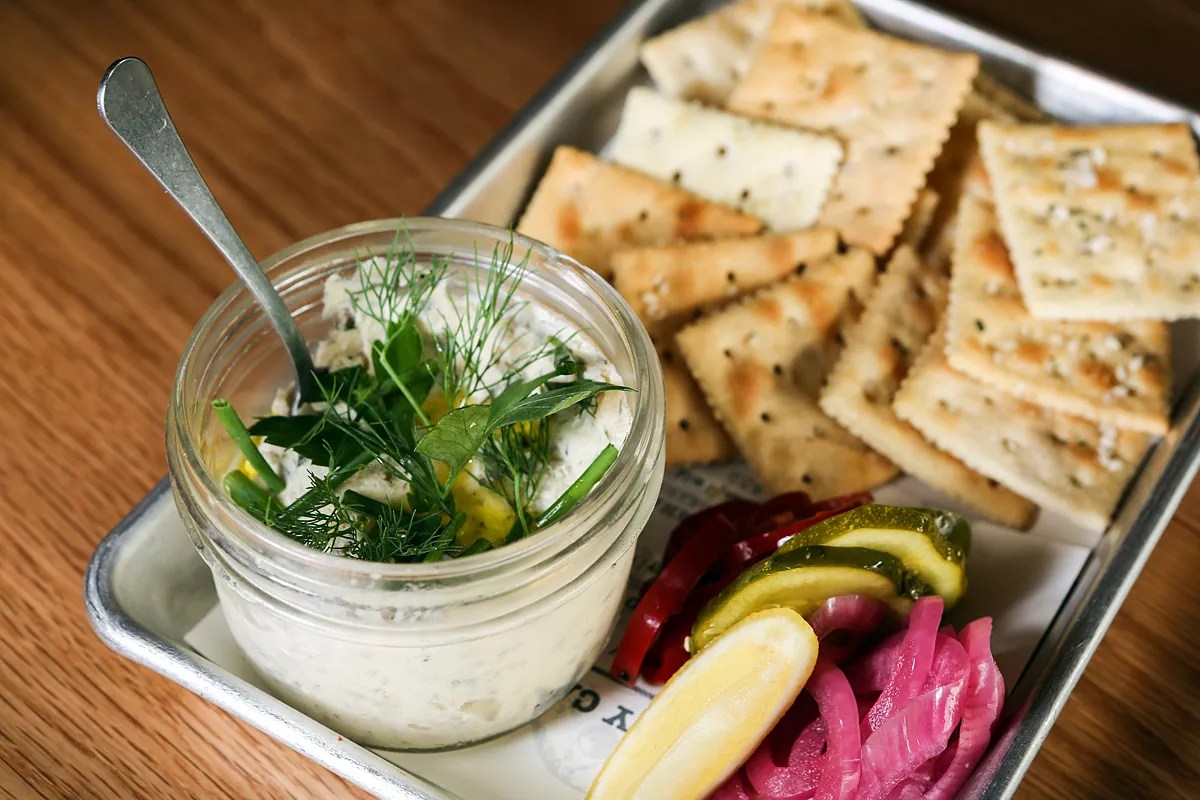 Some of the restaurant’s best-selling plates appear on the lunch menu, including the sweet corn spoon bread, loaded with buttermilk cream, scallions, and butter-poached lobster ($10 to $13); smoked fish dip made with cherrywood-smoked local catch, house pickles, and thyme and served with a handful of saltines ($9); and McInnis’ famed fried chicken, seasoned with bay leaves and citrus and served with pickled watermelon salad and hot sauce ($19).