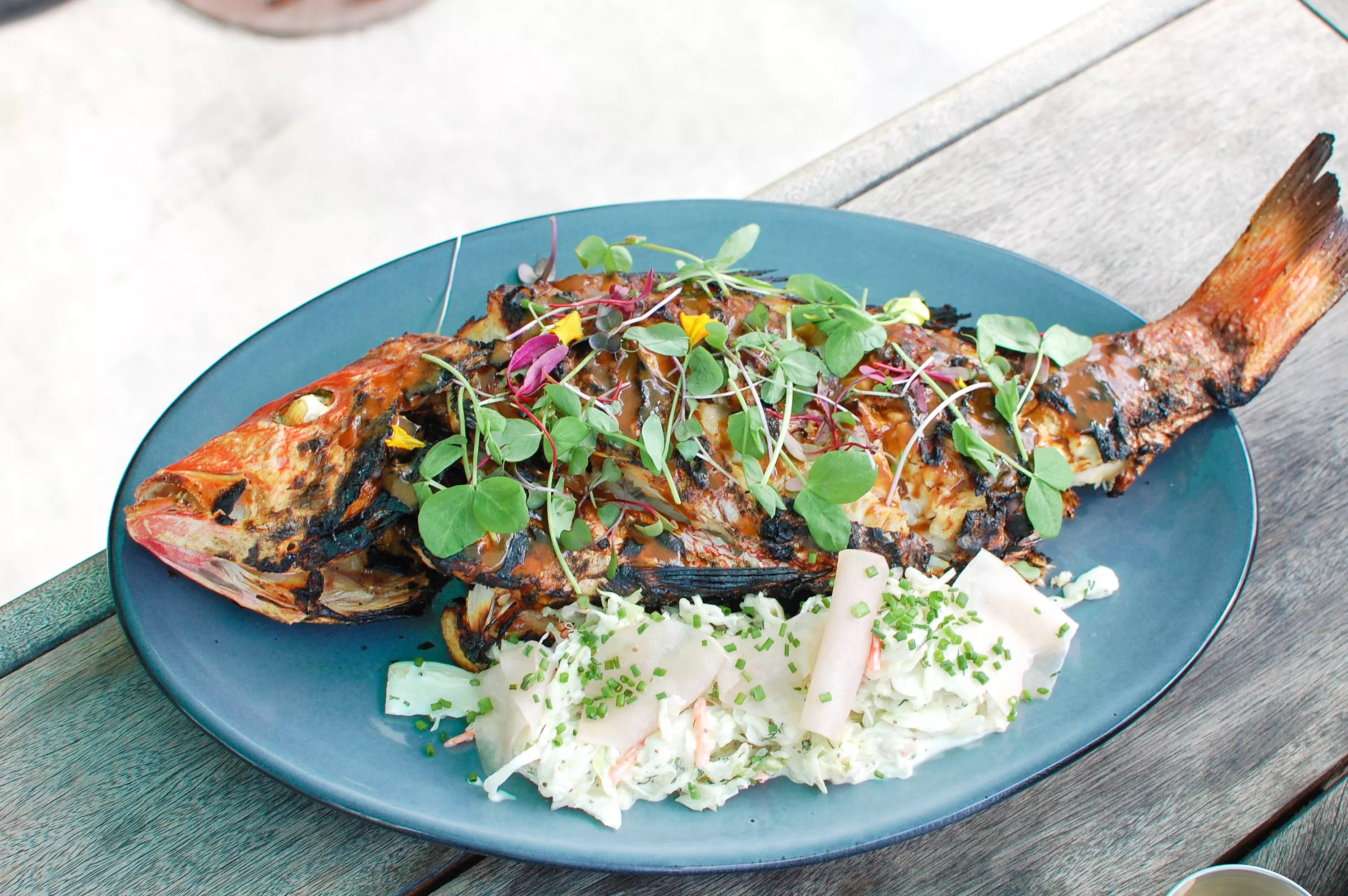 Otherwise, the menu now includes the fisherman’s tackle box, featuring a selection of raw bites such as shrimp and oysters; the whole grilled barbecued big fish, which is grilled over white oak and only available during brunch; and a waffle of the day, which rotates weekly.