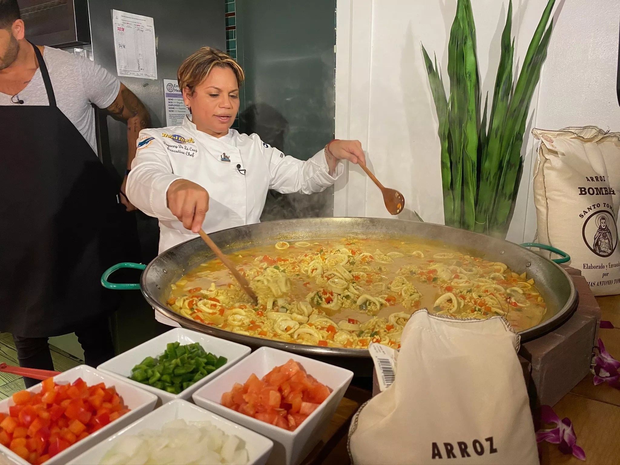 Chef Dayanny De La Cruz making paella.