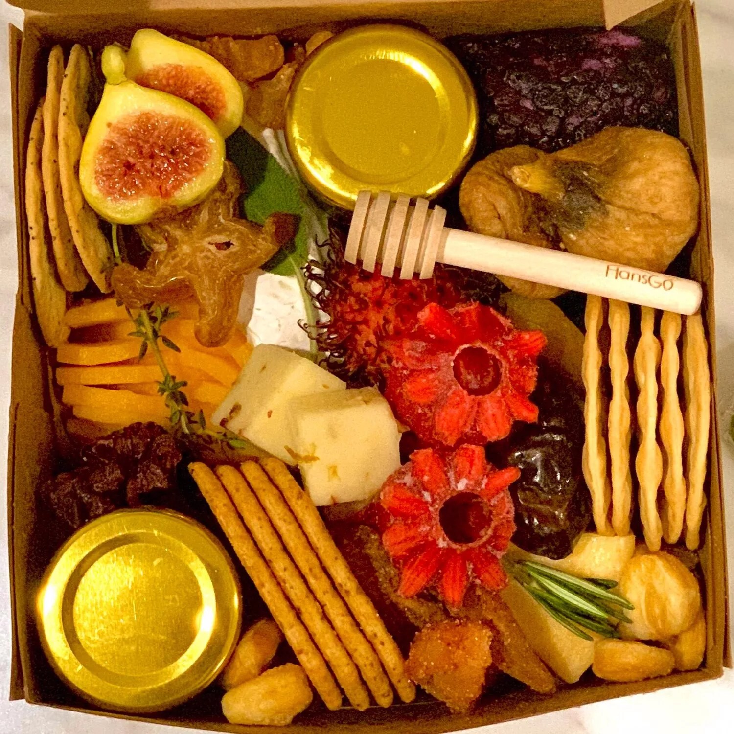 Adorable personal flans come packed in a holiday mailbox.
