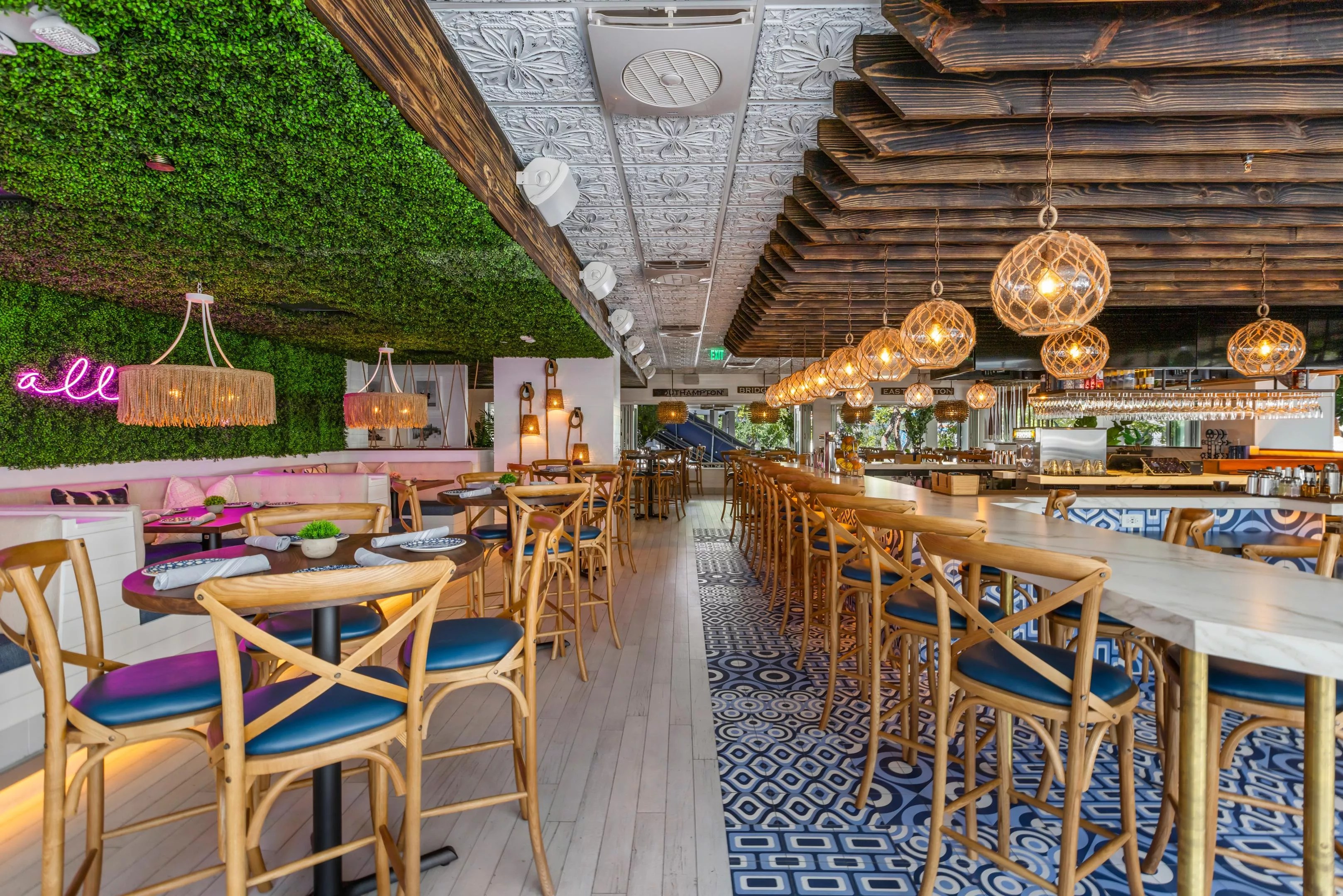 Inspired by the feeling of long summer days spent by the water in the Hamptons, New York, the Hampton Social brings its sunny decor, coastal-inspired cuisine, a photo-worthy neon sign in its main dining room, and craft cocktails (including said frosé) to Miami – where it will fit right at home, might we add.