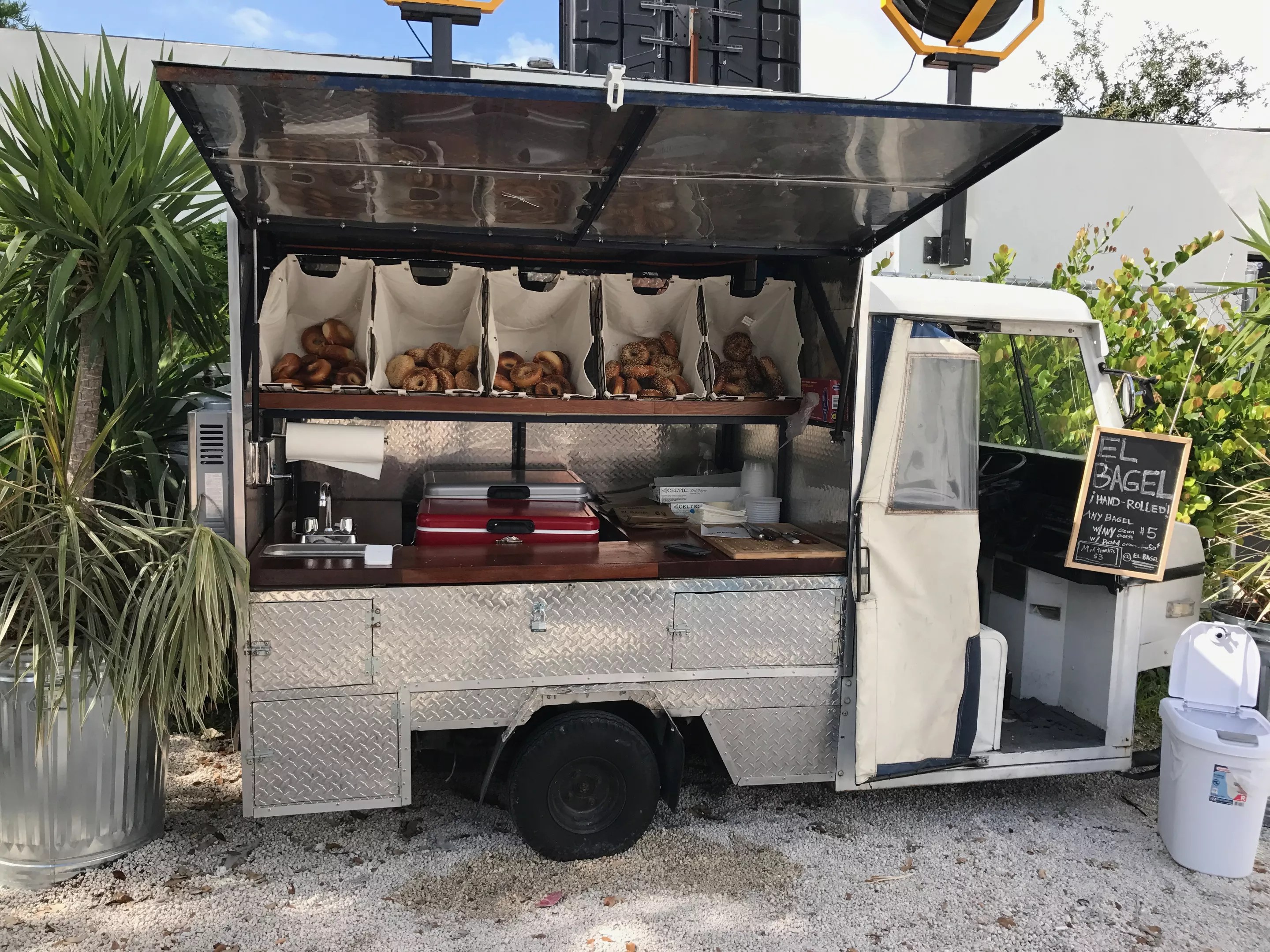 El Bagel’s first makeshift food truck parked behind Boxelder Craft Beer Market in Wynwood, where weekend lines became the norm.