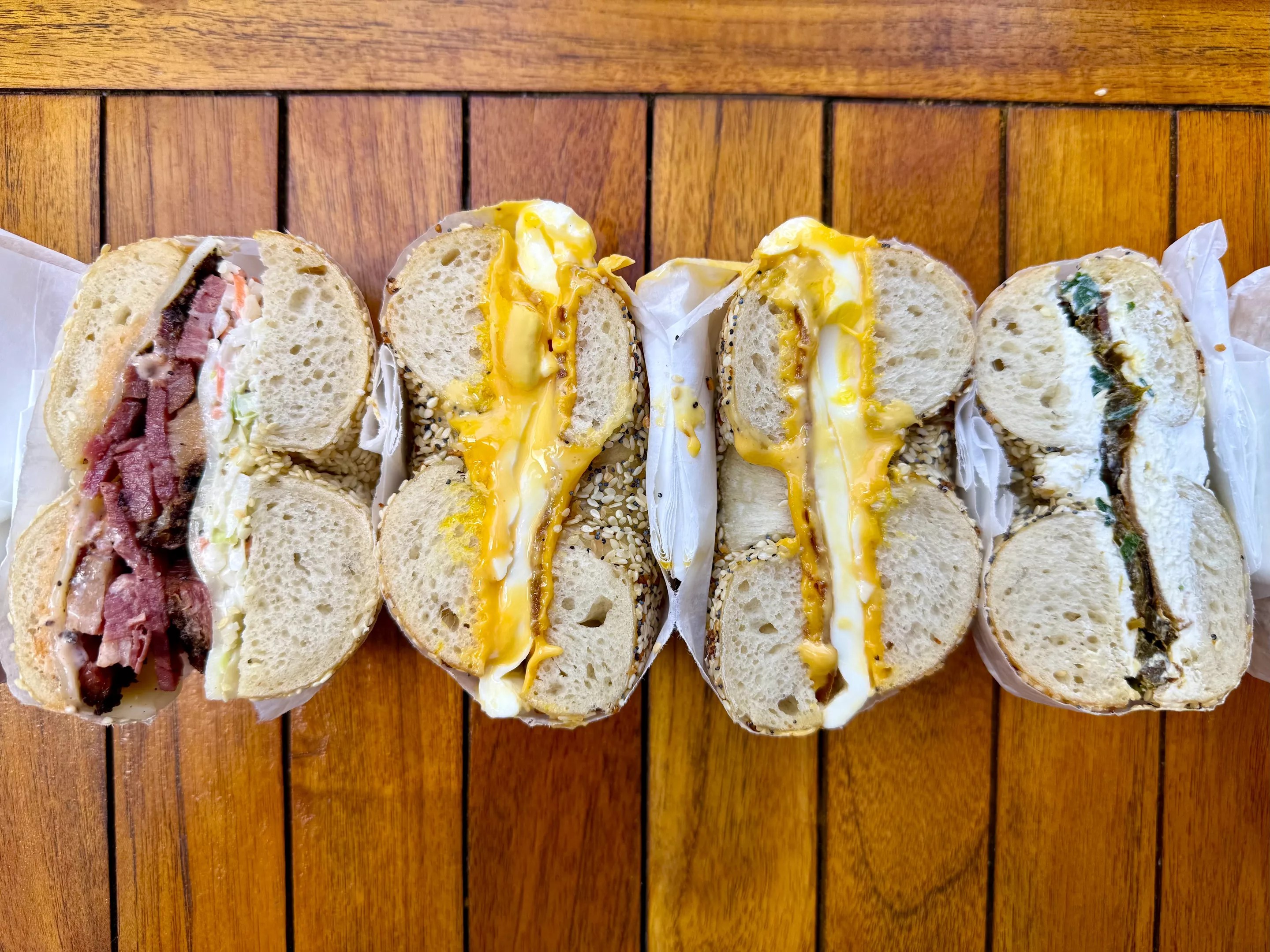 For those wondering how to snag one of these coveted bagels, here’s the rundown: At the MiMo location, you can order in person as a walk-in, online for pickup, or via DoorDash for delivery. The Coconut Grove outpost, owing to its smaller size, offers walk-in orders and DoorDash delivery, while online orders are limited to dozens or individual bagels – no sandwiches – because of space constraints. (Pro tip: If you’re trying to avoid the long wait times, come during the week. Whether you preorder online or walk in, you’re looking at a maximum 15-minute wait. Avoid the weekend rush, especially around 10:30 a.m., when lines are at their peak.)