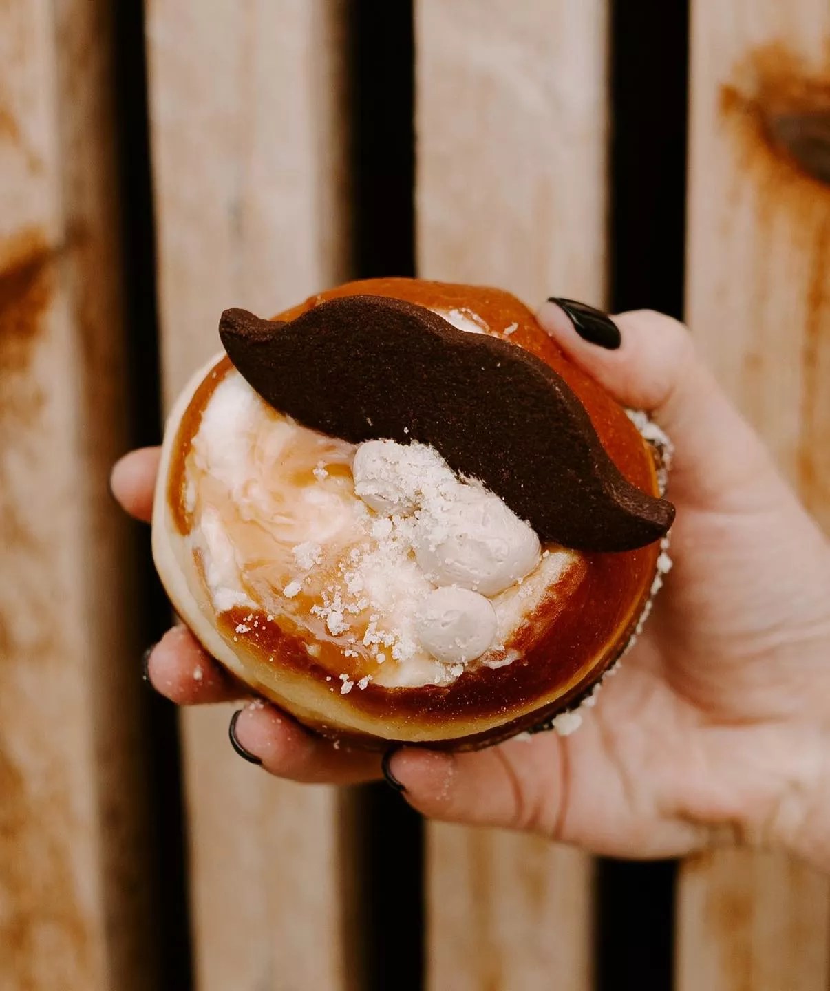 To commemorate the occasion and thank those who’ve supported the brand over the past decade, customers are encouraged to share photos from Pincho on social media, which will automatically be entered to win a “Pincho Black Card,” valued at $1,000. Today through November 16, ten winners will be chosen for a grand total of $10,000, split evenly among the winners. To be eligible, photos must tag @pincho and include the hashtag #10YearsofPINCHO. Available at all Pincho locations; pincho.com. Support Movember with a mustache doughnut. Photo courtesy of the Salty