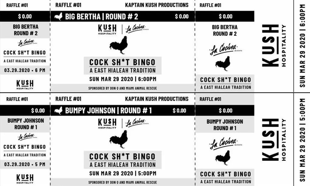 Cock Sh*t Bingo at La Cocina Coctelería. Noon to 11 p.m. Sunday, March 29, and the last Sunday of every month at 1000 E. 16th St., Hialeah; 305-887-8863; lacocinahialeah.com. Bingo starts at 5 p.m. Admission is free.