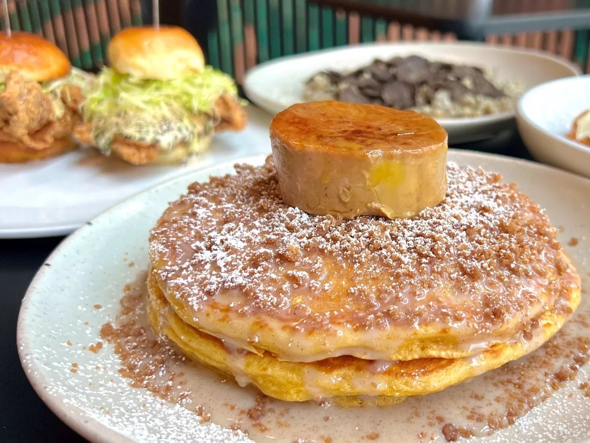 Vinya has partnered with other Miami restaurants like Casa Mariano, Harry’s Pizzeria Coconut Grove, Michael’s Genuine, Macchialina, Café La Trova, and HuaHua’s Taqueria for a phone-free day. Guests can visit the restaurants and enjoy a complimentary glass of Provence rosé by saying, “Leave your phone at home” to the manager or host upon arrival. 6 to 8 p.m. Tuesday, April 18, at various locations; nationaldayarchives.com. Pancakes with caramelized foie gras at Eating House Eating House photo
