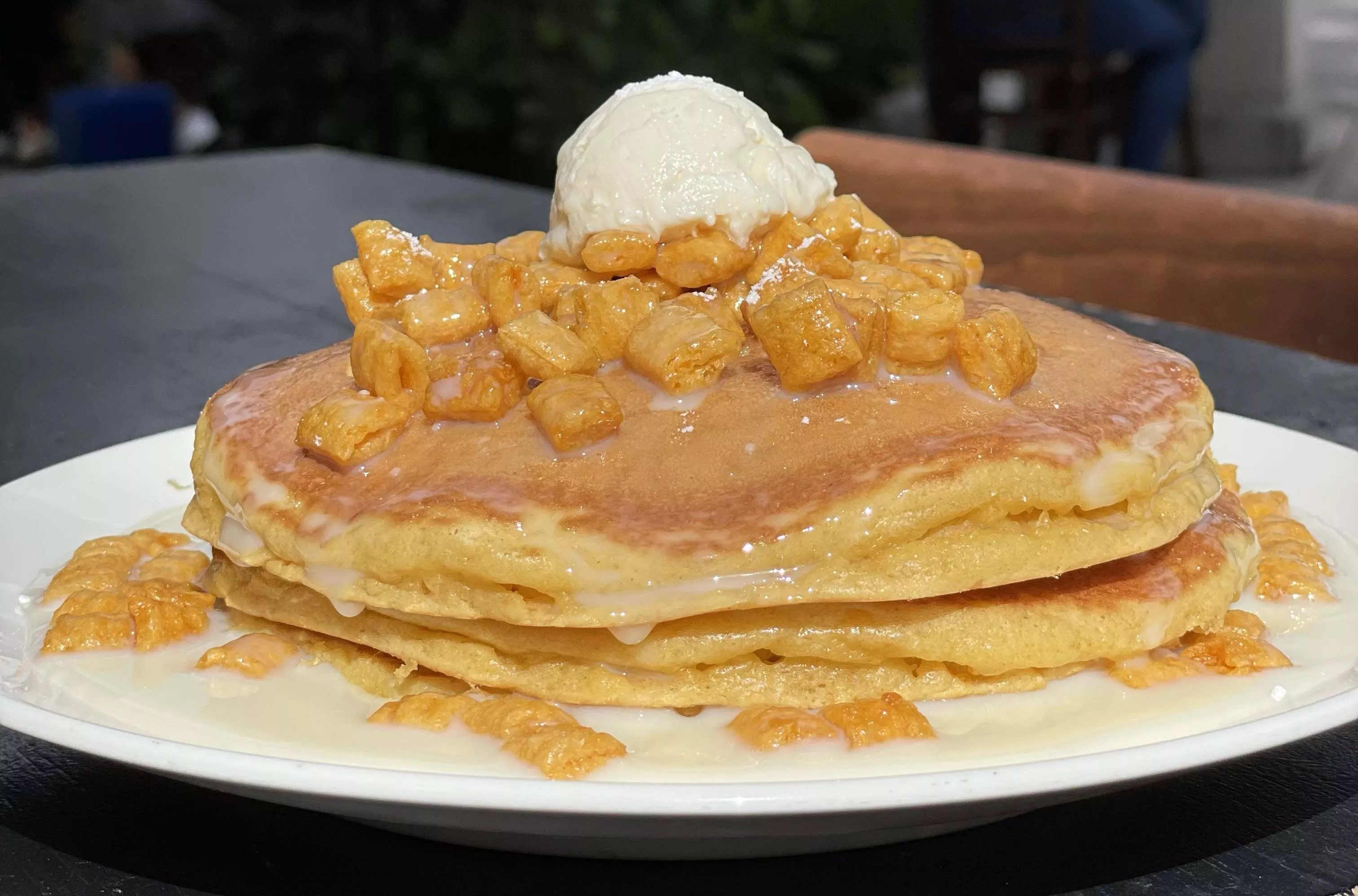 El Chinito Latino Bar’s spin on happy hour plays on the lucky number 777. During the lucky hour, tapas and cocktails cost $7 until 7 p.m. If guests are feeling lucky, they can spin the mini slot machine for a chance to land three 7s and win a free drink. 4 to 7 p.m. Thursday to Sunday, at 223 NW 23rd St., Miami; elchinitolatino.com. Cap’n Crunch pancakes Eating House photo