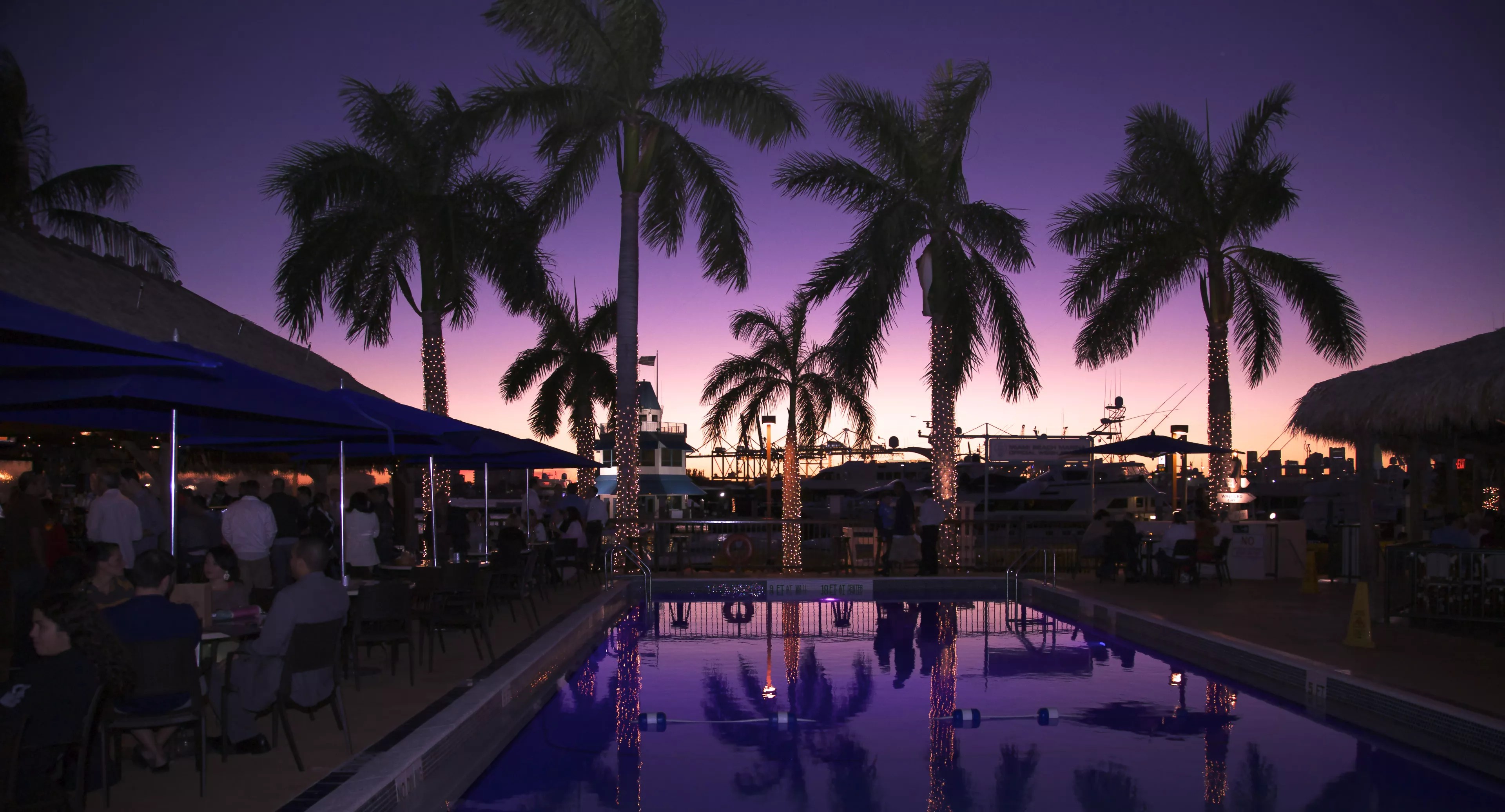 4. Monty’s Sunset. For those looking for a more laid-back experience, Monty’s is a great option for watching the sunset in the South Pointe area. At this poolside hangout, patrons can kick back with a pitcher of beer, wings, and peel-and-eat-shrimp while taking in unobstructed views of the Miami Beach Marina. 300 Alton Rd., Miami Beach; 305-672-1148 montyssobe.com. Courtesy of Juvia