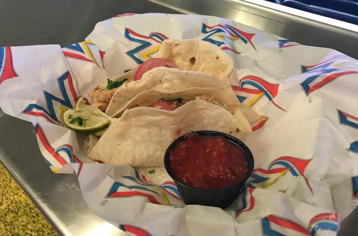 Though there’s nothing new about eating tacos at a game, these are in a league of their own. Moist marinated chicken is served in fresh soft flour tortillas. The key ingredient is salsa made with Homestead tomatoes. Add a squeeze of lime to bring out the subtle jalapeño notes in the meat.