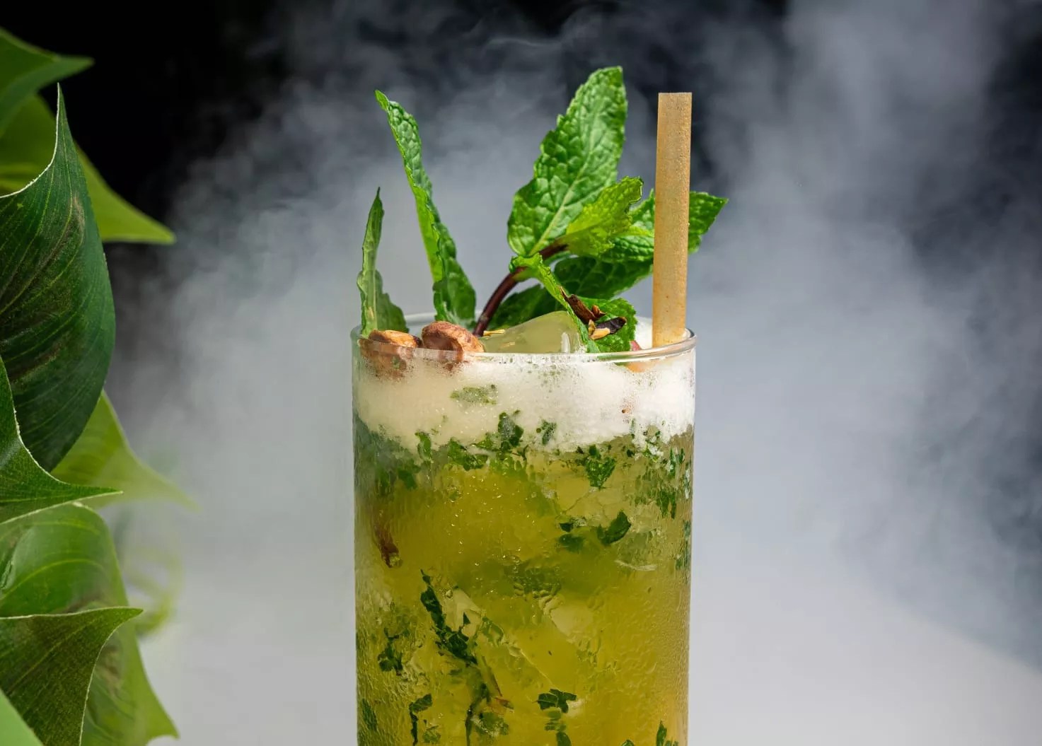 Tamandua: Zacapa Rum, Pistachio Monin, mint leaves, and lime juice