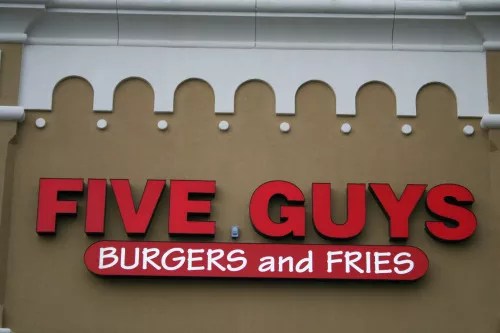 Like the West Coast’s renowned family-owned In-N-Out Burger chain, East Coast eatery Five Guys (whose original family-owned restaurant opened in 1986, nearly 40 years after I-N-O) has retro 1950s d