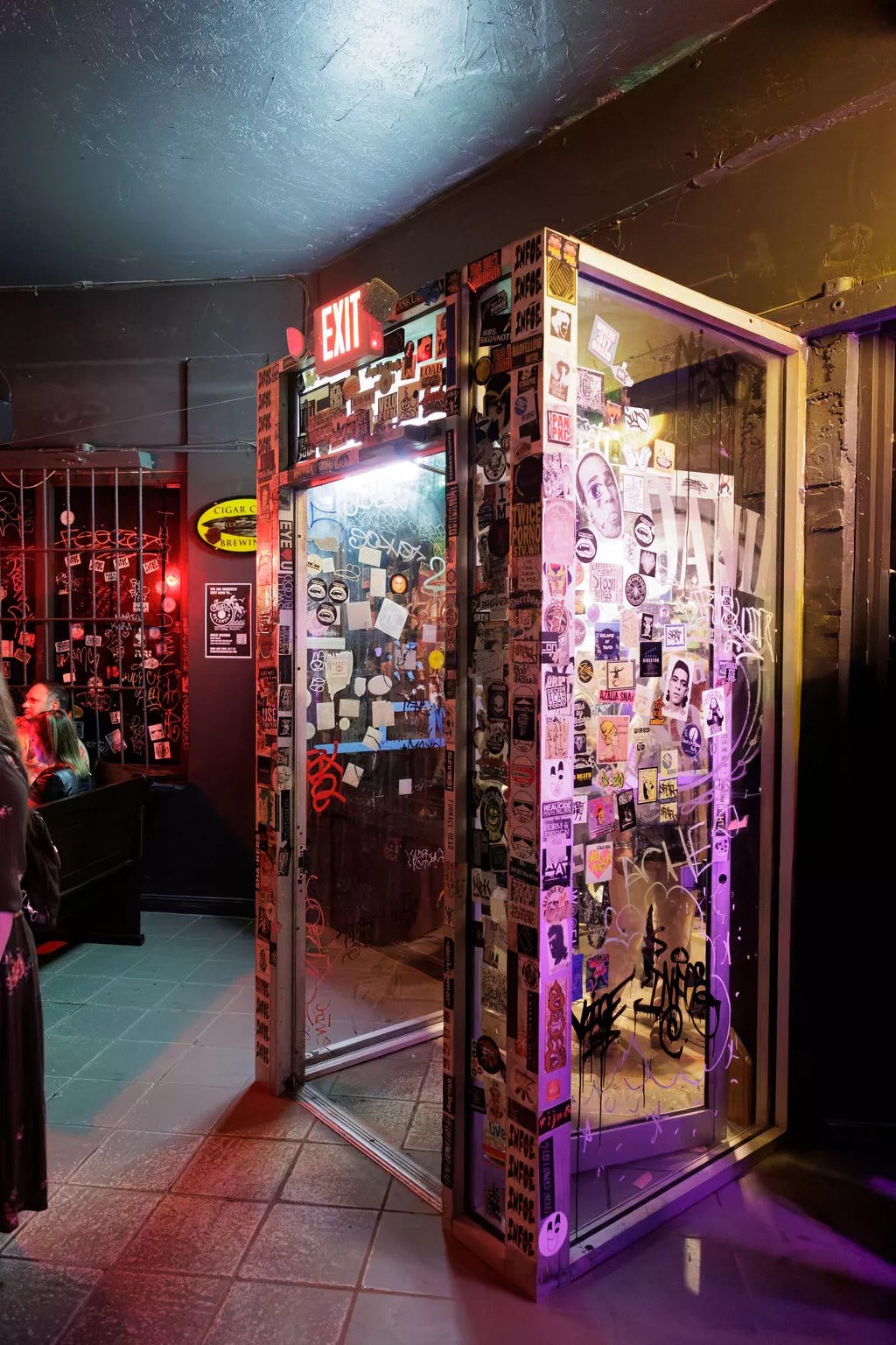 The doors opened at 8 p.m., but diehards started lining up at 4. Inside, it’s still Churchill’s, but with a fresh coat of paint. The stage has a new carpet. The infamous bathrooms in the corridor that connects the main room with the patio are mostly untouched (in faithful Churchill’s fashion). More bathrooms have been added up front near the pool table, and a third bathroom area has been placed across the main stage. Churchill’s infamous bathrooms. Photo by Flor Franceschetti Churchill’s renovated patio. Photo by Pati Laylle