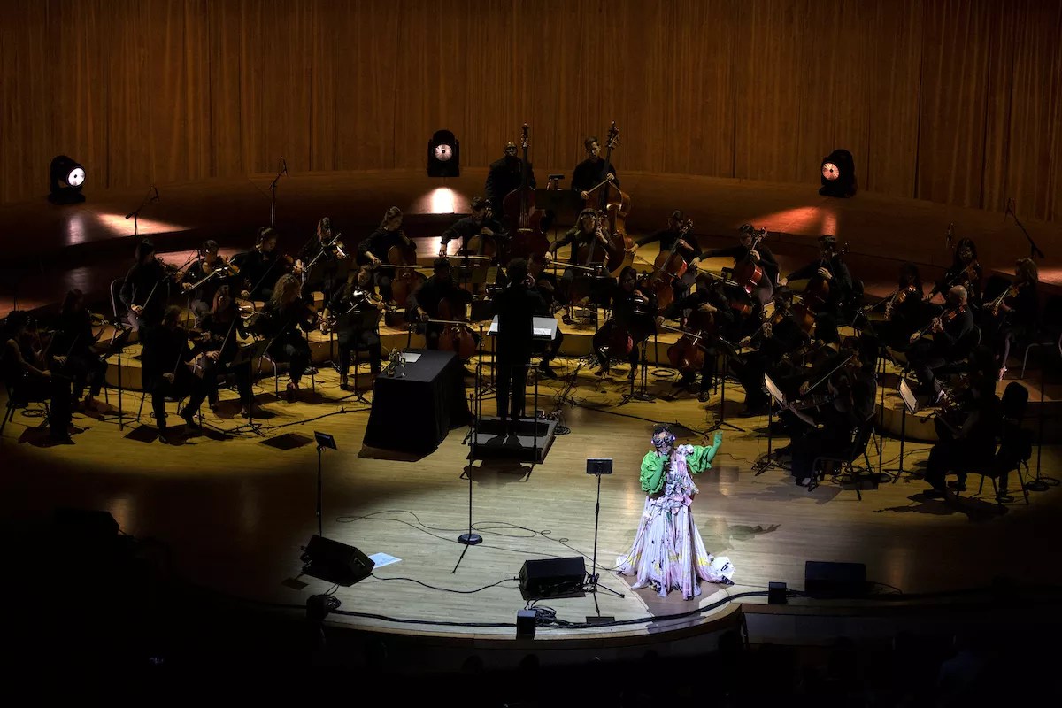 Björk performed with a 32-person string orchestra at the Adrienne Arsht Center.