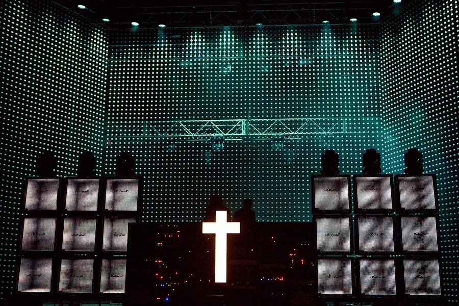 After making his Ultra debut the previous year, where he played the finished version of “Levels” for the first time, Avicii returned to the festival as the King of EDM the following year. Naturally, the King of EDM had to meet his equal, Madonna, the Queen of Pop. The pop superstar had released her pop-meets-EDM album, MDNA, that very weekend. Okay, let’s not play dumb anymore. Madonna’s album title references the similarly named club drug. So when Madonna asked the crowd during Avicii’s set if they had “seen Molly,” we all know what she meant. Unfortunately, the one question overshadowed the meeting between the two titans, with even Deadmau5 chiming in. Justice blew away the crowd gathered at Ultra Music Festival’s Main Stage in 2012. Photo by Ian Witlen